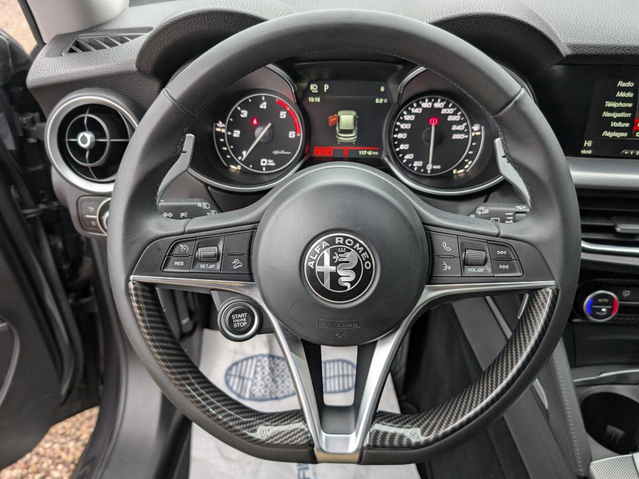 2 prises USB AR8 haut-parleursAir conditionné automatique bi-zone avec aérateurs aux places arrièreAvertisseur de dépassement de ligne blanche (LDW)Banquette arrière rabattable 40/20/40Bouton de démarrageChrome Line (encadrement des vitres chromé)Double sortie d'échappementEssuie-glaces avant automatique avec détecteur de pluie et allumage automatique des feuxFeux arrière à LEDFrein de parking électroniqueFreinage d'urgence autonome (AEB)Hayon arrière motorisé avec mémorisation de la hauteur d'ouvertureInserts noirs planche de bord, portières et contre-portesInstrumentation de bord TFT 3,5” en couleurKit “Fix&Go”Pack EclairagePrise USB avantRadar de stationnement avantRadars de stationnement arrièreRéglage manuel de sièges avant 6 positionsRégulateur de vitesseRétroviseur intérieur électrochromeRétroviseurs extérieurs rabattables électriquementRotary PadSélecteur de mode de conduite Alfa DNASellerie mixte AlfaTec et tissuSeuils des portes en aluminiumSystème Alfa Connect Nav 6,5”Système d'aide à la descenteSystème d'alerte anti-collisions (FWC) avec détection piétonsSystème de freins integré (IBS)Système Stop & StartTapis de sol noirVolant cuir multifonction