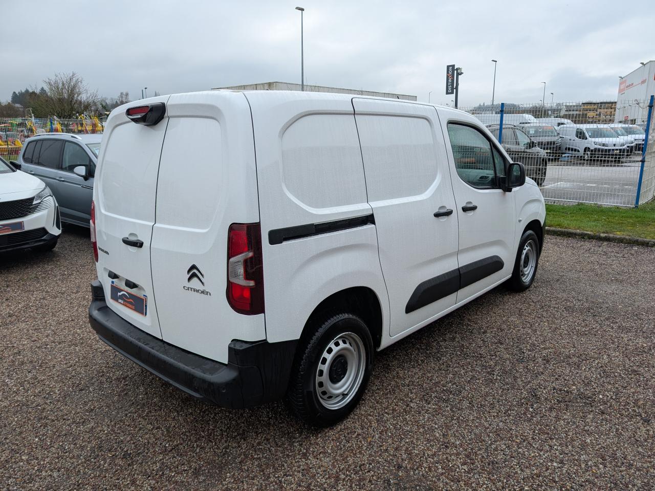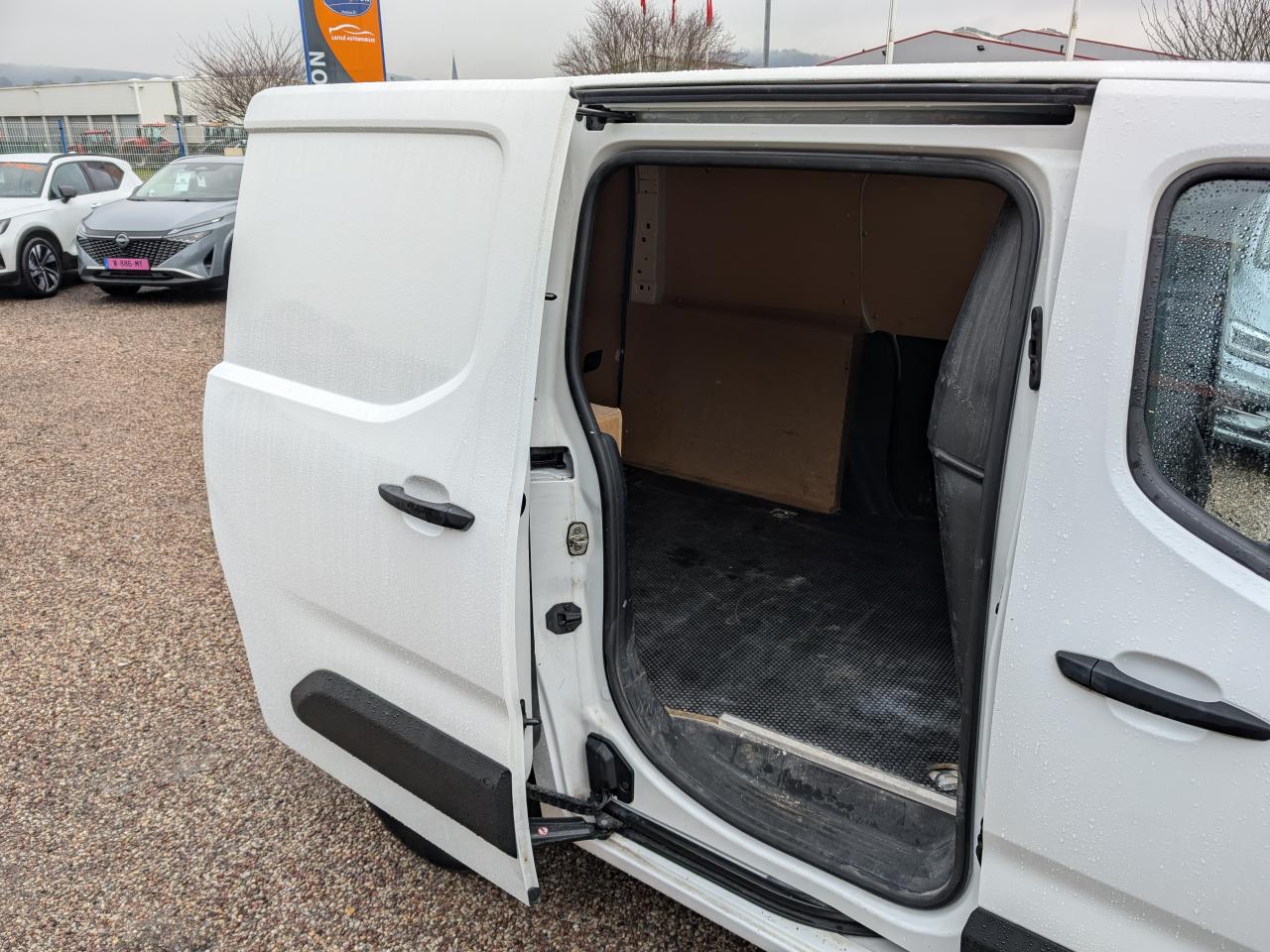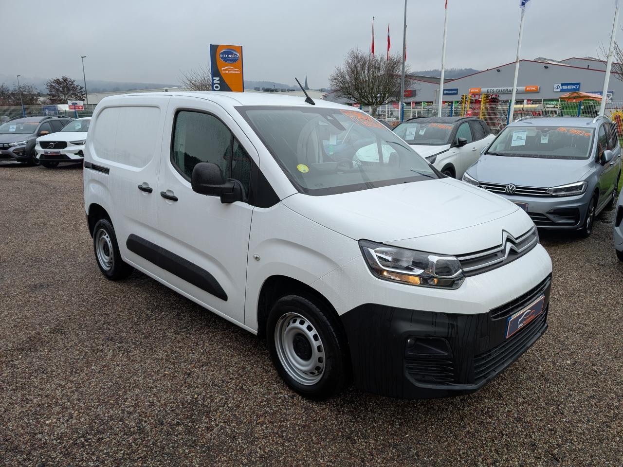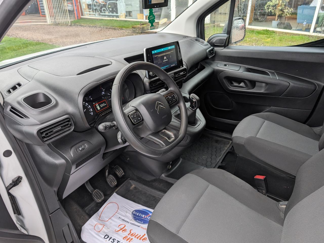 6 anneaux d'arrimage en zone de chargementABS avec répartiteur électronique de freinage (REF) et aide au freinage d'urgence (AFU)Aide au démarrage en côteAide au stationnement arrièreAirbag frontal conducteurAllumage automatique des projecteursBac de porte avantBaguettes de protection latérales noires teintées masseBoîte à gants supérieure Top Box fermée (réfrigérée si climatisation)Bouchon / trappe à carburant verrouillablesCapucine transversale de rangement ouverteCITROËN Connect Box avec Pack SOS et assistance inclusClimatisation manuelleCloison pleine fixe (avec crochet porte-habit)Commande du système audio au volantCondamnation centralisée avec plip 3 boutonsContrôle dynamique de conduite (ESP) avec fonction anti-patinage (ASR)Coques de rétroviseurs noires teintées masseDétection de sous-gonflage indirecteEclairage d'accueil et d'accompagnementEssuie-vitre avant avec système de lavage 'Magic Wash'Frein de stationnement électriqueJantes tôle 15'' grises avec cabochonKit mains libres Bluetooth et prise USBLève-vitres avant électriquesOrdinateur de bordPare-chocs avant et arrière noirs teintés massePeinture opaque Blanc BanquisePneumatiques 195/65 R15Poignées de portes extérieures noires teintées massePorte latérale droite coulissante tôléePortes arrières battantes tôlées 60/40 avec ouverture à 180°Prise 12 V sur planche de bordProjecteurs antibrouillardRégulateur et limiteur de vitesseRétroviseurs extérieurs réglables électriquement et dégivrantsRails de PLC avec enjoliveurs noirs teintés masseRangement fermé derrière le combinéRevêtement de sol en TPO dans l'habitacleRoue de secours homogèneSellerie tissu Mica GreySiège conducteur confort avec réglage en hauteur, réglage lombaire, rangement sous siège et accoudoirSiège passager individuel réglable en inclinaison et en longueurSystème audio MP3 (2 HP + 2 tweeters) avec commandes sous volantVolant mousséVolant réglable en hauteur et en profondeurZone de dépose pour smartphone