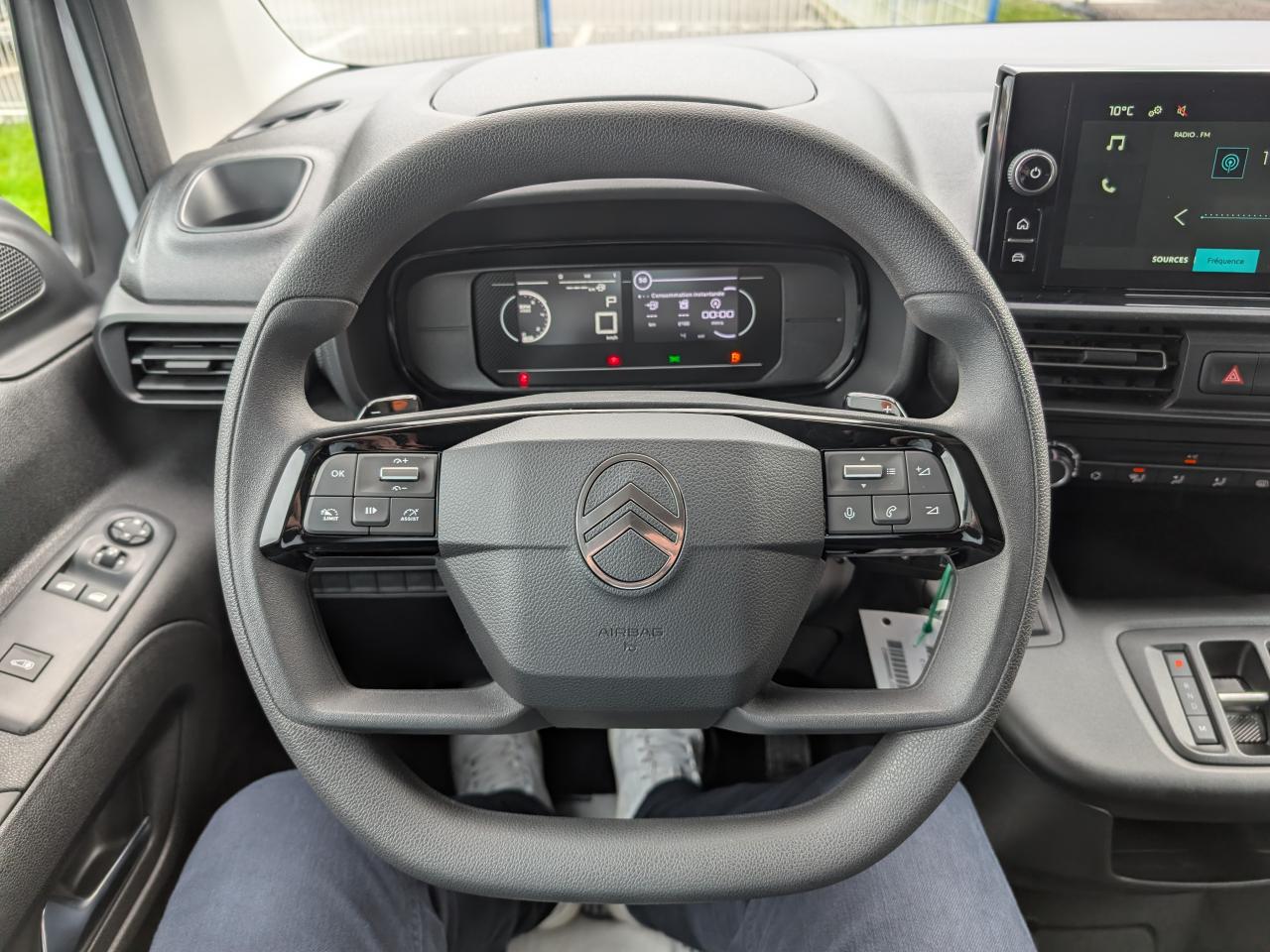 6 anneaux d'arrimage en zone de chargementAide au démarrage en côteAide au stationnement arrièreAirbag frontal conducteurAirbag passager avec airbags latéraux et rideaux avantAllumage automatique des projecteursAppuis-tête passager réglable en hauteurBoîte à gant ouverte en partie basseBoîte à gants fermée et réfrigérée en partie hauteCapucineClimatisation manuelleCloison pleine fixeCommutation automatique des feux de routeCondamnation centralisée avec 1 plip HF + 1 cléConnect Box avec Pack SOS et assistance inclusContrôle dynamique de conduite (ESP) avec fonction anti-patinage (ASR)Détecteurs de sous-gonflageEssuie-vitre avant avec système de lavage 'Magic Wash'Frein de stationnement électriqueJantes tôle 16" grises avec cabochonKit de dépannage provisoire de pneumatiquesLève-vitres avant électriquesPack SafetyPeinture opaque Blanc IcyPneumatiques 205/60 R16Porte latérale droite coulissante tôléePortes arrières battantes tôlées 60/40 avec ouverture à 180°Prise 12 V sur planche de bordProjecteurs EcoLEDRégulateur et limiteur de vitesseRétroviseurs extérieurs réglables électriquement et dégivrantsRevêtement moquette dans l'habitacleSellerie tissu Curitiba Triton MeltemSiège conducteur avec réglage en longueur et dossier inclinableSiège passager réglable en inclinaisonStation d'accueil pour smartphone - Entrée avec reconnaissance vocale pour un seul smartphone, commandes au volant, 2 ports USB (2 charges)Système antiblocage des roues (ABS) & Assistance au freinage d'urgence (AFU)Volant multifonctionsVolant réglable en hauteur et en profondeur