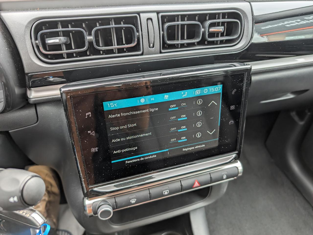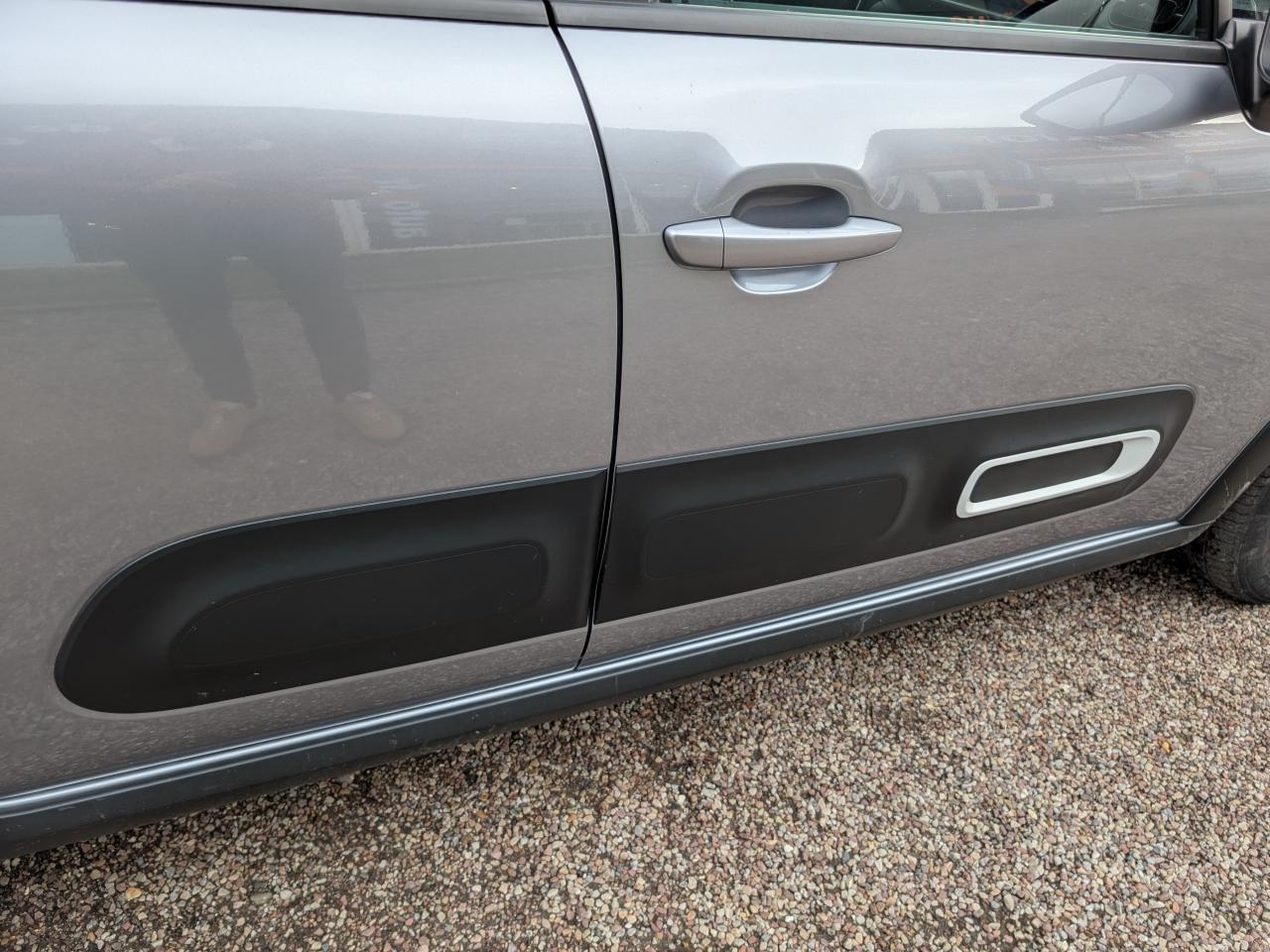 ABS avec répartiteur électronique de freinage (REF) et aide au freinage d'urgence (AFU)Aide au démarrage en côteAirbags frontaux, latéraux AV et rideauxAllumage des feux de détresse en cas de forte décélérationBandeau de planche de bord Noir Brillant avec cerclage Chrome SatinBanquette arrière fractionnable 2/3 - 1/3Boitiers de rétroviseurs extérieurs noir brillantClignotants impulsionnelsClimatisation automatique avec fonction filtrage de l'airCommandes audio au volantCondamnation centralisée avec plipContrôle dynamique de stabilité (ESP)Décors extérieurs Noir Mat (enjoliveurs de montant central et custode)Détecteur de sous-gonflageDirection à assistance électriqueElargisseurs d'ailes et bas de caisse noir matEnjoliveurs 3D 16’’ STEEL & DESIGNFeux arrière à effet 3DFeux diurnes à LEDFonction 'Mirror Screen' (Apple Carplay / Android Auto)Garnissage Tissu Mica Grey avec surpiqûres jauneKit de dépannage provisoire de pneumatiquesKit mains libres Bluetooth et prise USBLève-vitres avant électriquesMy Citroën Play : Système audio numérique (DAB) sur tablette tactile 7"Ordinateur de bordPack Color NoirPack SafetyPack VisibilitéPare-soleil avec miroir de courtoisie occultable côtés conducteur et passagerPavillon ton caissePlafonnier avant simplePoignées de portes extérieures couleur caissePrises 12 volts AVProjecteurs antibrouillardProjecteurs avant LEDRégulateur et limiteur de vitesseRétroviseurs extérieurs réglables électriquement et dégivrantsSans Airbump BlackSécurité enfants manuelleSiège conducteur réglable en hauteurSystème audio numérique (DAB) MP3 6 HPSystème de fixation ISOFIX sur les sièges arrièreTeinte de caisse nacrée monoton SableTémoin et alerte sonore de débouclage des ceintures passagers arrièreVitres arrière manuellesVolant mousséVolant réglable en hauteur et en profondeur