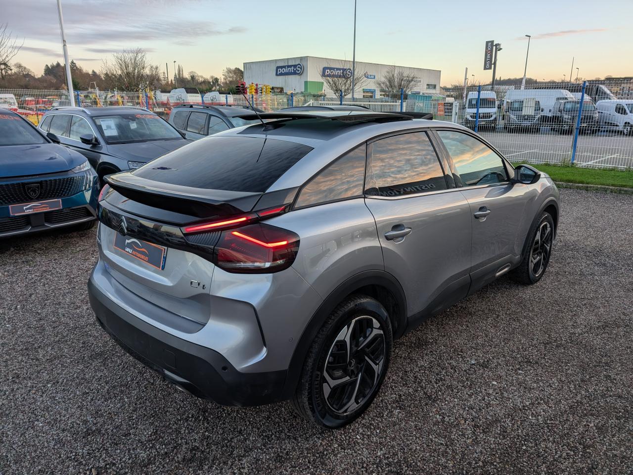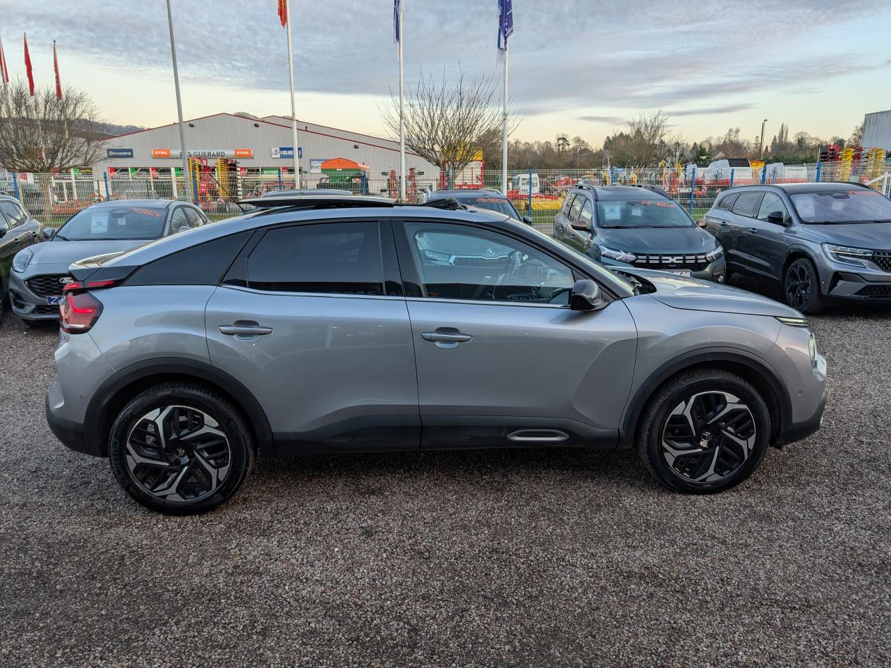 ABS avec répartiteur électronique de freinage (REF) et aide au freinage d'urgence (AFU)Accès et démarrage mains libres ProximityAérateurs centraux pour les passagers arrièreAffichage tête haute couleurAide au démarrage en côteAide au stationnement arrièreAirbags frontaux, latéraux avant et rideauxAllumage automatique des projecteursAmbiance Hype BlackAntibrouillards avant à LED avec éclairage d'intersectionBanquette arrière fractionnable 2/3 - 1/3Boitiers de rétroviseurs extérieurs noir brillantCaméra de recul avec Top Rear VisionCITROËN Connect Box avec Pack SOS et assistance inclusCitroën Connect Nav sur tablette tactile 10''Clignotants impulsionnelsClimatisation automatique bi-zoneCombiné numérique couleur avec rétro-éclairageCommandes audio au volantCondamnation automatique du coffre et des portes en roulantCondamnation centralisée avec plipConnect Play : Mirror Screen (compatible Android Auto et Apple Carplay)Console centrale avec accoudoir et rangementsContrôle dynamique de stabilité (ESP)Désactivation manuelle airbag passager AVDétection de sous-gonflage des pneumatiquesDirection à assistance électrique variableEclairage d'accueil et d'accompagnementEclairage des caves à pieds avantElargisseurs d'ailes et bas de caisse noir matEssuie-glace à déclenchement automatiqueFeux diurnes à LEDFixations ISOFIX sur sièges latéraux arrièreFrein de stationnement électrique automatiqueJantes alliage 18'' AEROBLADE DiamantéesJupe arrière en Noir BrillantKit de dépannage provisoire de pneumatiquesKit mains libres BluetoothLève-vitres avant et arrière (rang 2) électriques et séquentielsPack SafetyPack StylePare-soleil avec miroir occultable et éclairage à LED côtés conducteur et passagerPlafonniers avant et arrière à LEDPlancher de coffre modulable 2 positionsPoignées de portes extérieures couleur caissePrise 12V à l'avantPrise USB-A en rang 1Prise USB-A en rang 2Prise USB-C en rang 1 (pour fonction Mirror Screen)Prise USB-C en rang 2Projecteurs LED avec signature lumineuse en VRétroviseur intérieur électrochromeRétroviseurs extérieurs réglables électriquement et dégivrantsSécurité enfants manuelleSiège conducteur avec réglage lombaireSiège conducteur réglable en hauteurSiège passager réglable en hauteurSuspension Citroën Advanced ComfortTiroir de planche de bordVolant cuir pleine fleurVolant réglable en hauteur et en profondeur