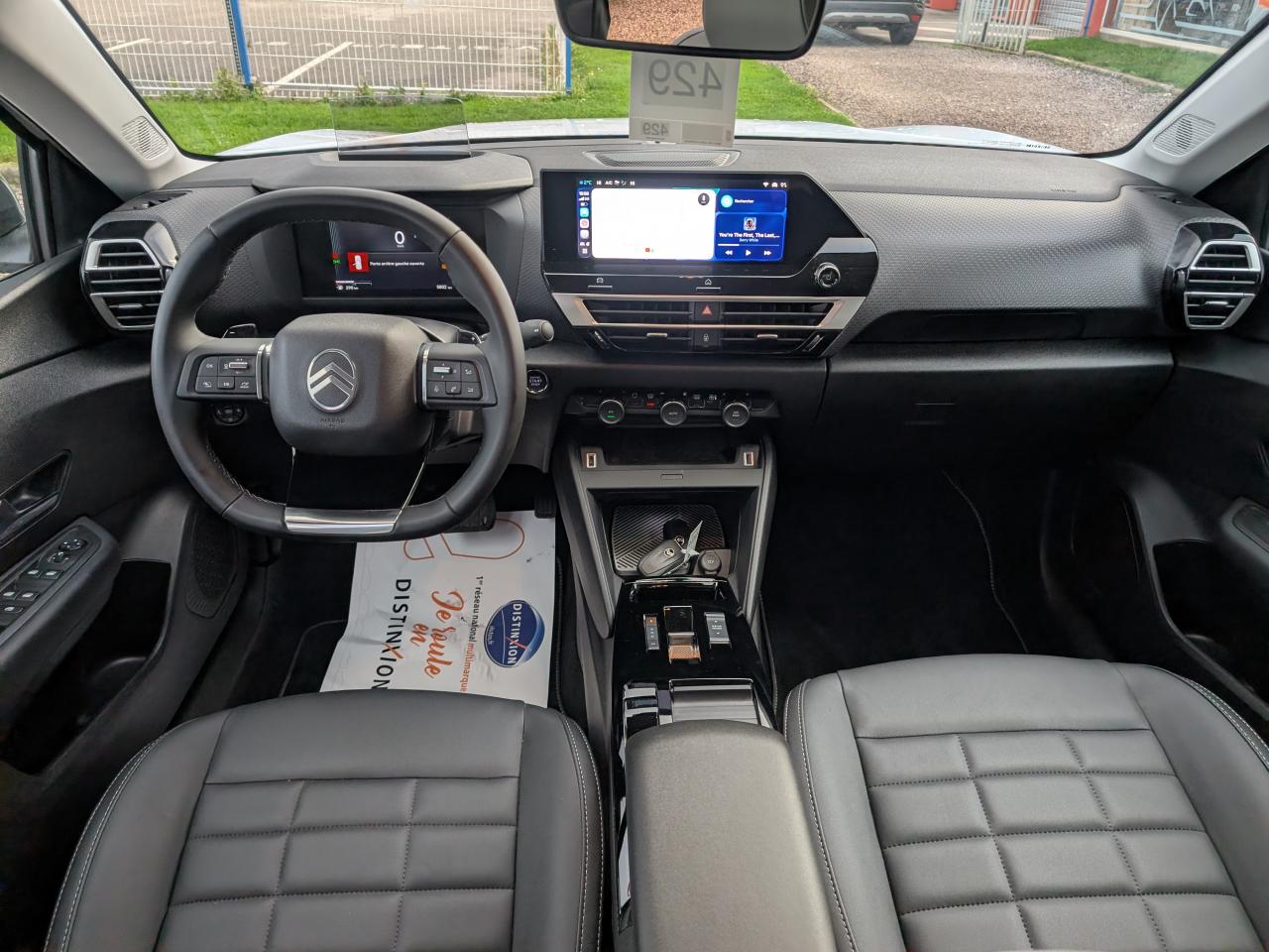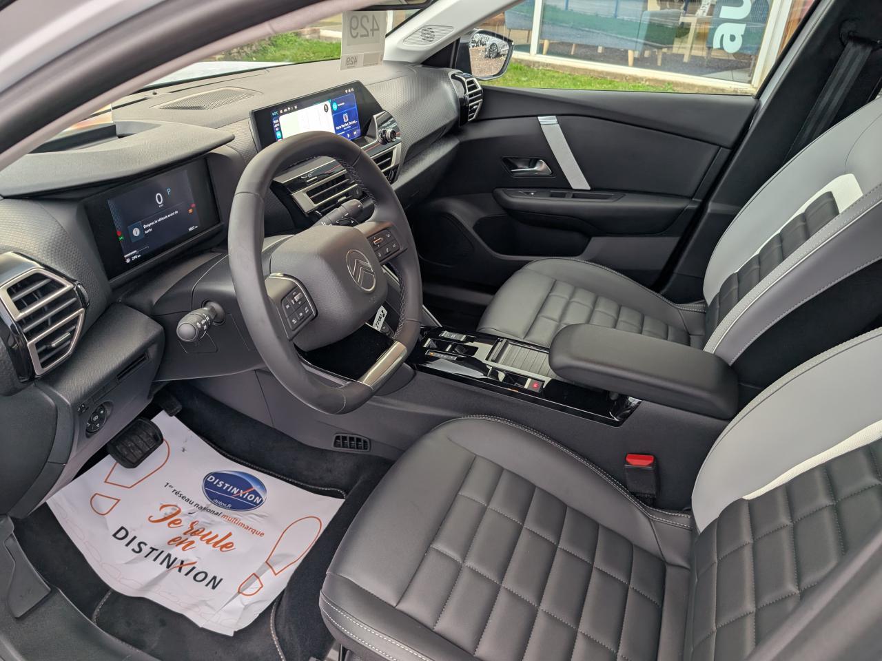 Aérateurs centraux pour les passagers arrièreABS avec répartiteur électronique de freinage (REF) et aide au freinage d'urgence (AFU)Accès et démarrage mains libres ProximityAide au démarrage en côteAide au stationnement arrièreAide au stationnement avantAirbags frontaux, latéraux avant et rideauxAmbiance Métropolitan GreyApple CarPlay et Android Auto (les deux sans fil)Banquette arrière fractionnable 2/3 - 1/3Boîtier télématique : Appel d’urgence et Citroën AssistanceBoitiers de rétroviseurs extérieurs noir brillantClignotants impulsionnelsClimatisation automatique bi-zoneColor Clips Gold SatinCommandes système audio et régulateur de vitesses au volantCondamnation automatique du coffre et des portes en roulantCondamnation centralisée avec plipConsole centrale haute avec rangement fermé, 2 porte-gobelets et accoudoir coulissantContrôle dynamique de stabilité (ESP)Détection de sous-gonflage des pneumatiquesDirection à assistance électrique variableEclairage d'accueil et d'accompagnementElargisseurs d'ailes et bas de caisse noir matEssuie-glace à déclenchement automatiqueFeux arrière avec signature lumineuse à LEDFeux de jour avec signature LEDFixations ISOFIX sur sièges latéraux arrièreFrein de stationnement électrique automatiqueJantes alliage 18'' AMBER DiamantéesJupe arrière en Noir BrillantKit de dépannage provisoire de pneumatiquesKit mains libres BluetoothLécheurs de vitres noirsPack Drive AssistPack Navigation ConnectéePack SafetyPalettes de changement de rapports au volantPare-soleil conducteur et passager avec miroir occultablePhares à LEDPlafonniers avant et arrièrePlancher de coffre à 2 niveauxPoignées de portes extérieures couleur caissePrise 12V à l'avantPrise USB-A en rang 1Prise USB-A en rang 2Prise USB-C en rang 1 (pour fonction Mirror Screen)Rétroviseur intérieur électrochromeRétroviseurs extérieurs réglables électriquement et dégivrantsRétroviseurs extérieurs rabattables électriquement et éclairage d'accompagnementSécurité enfants manuelleSabot avant Silver Chrome SatinServices Connect PlusSiège conducteur avec réglage lombaireSiège conducteur réglable en hauteurSiège passager réglable en hauteurSuspension Citroën Advanced ComfortSystème audio numérique (DAB) MP3 6 HPVitres avant et arrière électriques séquentiellesVitres latérales et lunette arrière surteintéesVolant cuir pleine fleurVolant réglable en hauteur et en profondeur