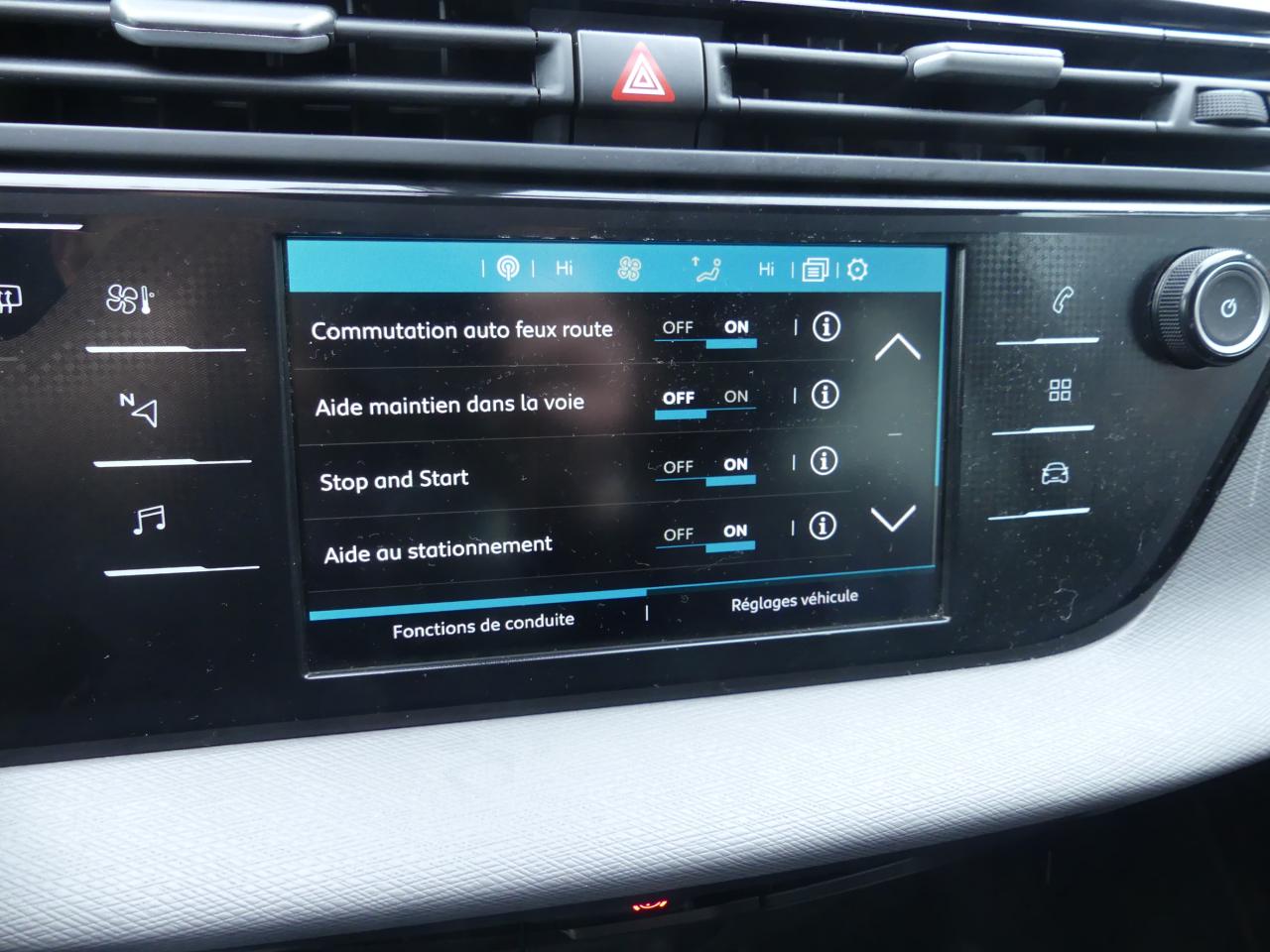 ABS avec répartiteur électronique de freinage (REF) et aide au freinage d'urgence (AFU)Aérateurs bizone en rang 2Aide au démarrage en penteAirbags frontaux pour conducteur et passager avantAirbags latérauxAirbags rideauxAllumage automatique des feux de détresse en cas de forte décélérationAllumage automatique des pharesCITROËN Connect Nav avec CITROËN Connect BoxClimatisation automatique bizoneCoffee Break AlertCommandes de la boîte de vitesses au volant par sélecteur et palettesCondamnation automatique du coffre et des portes en roulantCondamnation centralisée avec plipConsole centrale amovibleContrôle de Traction IntelligentContrôle dynamique de stabilité (ESP) et antipatinage (ASR)Coulissement des sièges arrièresDétecteurs de sous-gonflageEcran panoramique 12" HDEssuie-vitre arrièreEssuie-vitre avant avec intermittence indexée à la vitesseFeux diurnes à LEDFixations ISOFIX 3 points pour sièges enfants aux 3 places de rang 2Frein de stationnement électrique automatiqueIndicateur de température extérieure avec alerte risque de verglasKit mains libres Bluetooth et prise USBLève-vitres électriques avant et arrière, séquentiels et antipincementMirror Screen (Apple carplay et android auto)Ordinateur de bord multifonctionPack Safety (Active Safety Brake Alerte attention conducteur Alerte de franchissement Involontaire de ligne Commutation automatique des feux de route Reconnaissance des panneaux de limitation de vitesse Rétroviseur intérieur automatique jour/nuit)Pare-brise acoustiquePare-brise athermiquePare-soleil coulissants conducteur et passager avant avec miroir de courtoisie occultablePlafonnier avant avec éclairagePrise 12 volts à l'avant et à l'arrièreProjecteurs antibrouillard avec éclairage statique d'intersectionProjecteurs halogèneRadars de stationnement avant et arrièreRégulateur - limiteur de vitesse programmableRétroviseurs extérieurs dégivrants et réglables électriquementRétroviseurs extérieurs rabattables électriquement avec éclairage d'approche à LEDSécurité enfants sur portes arrièreSellerie tissu Milazzo GreySiège conducteur réglable en hauteurSiège passager réglable en hauteurSièges arrière (trois) de même largeur Signature lumineuse à LEDSystème audio bi-tuner RDS MP3Système audio et commandes au volantSystème Stop & StartTablette aviation au dos des sièges avantTablette tactile 7" de contrôle des fonctionnalitésTémoin et alerte de débouclage des ceintures de sécurité en rang 2Témoin et alerte de non-bouclage des ceintures de sécurité avantVitres latérales et lunette arrière surteintéesVolant gainé croûte de cuirVolant réglable en hauteur et en profondeur