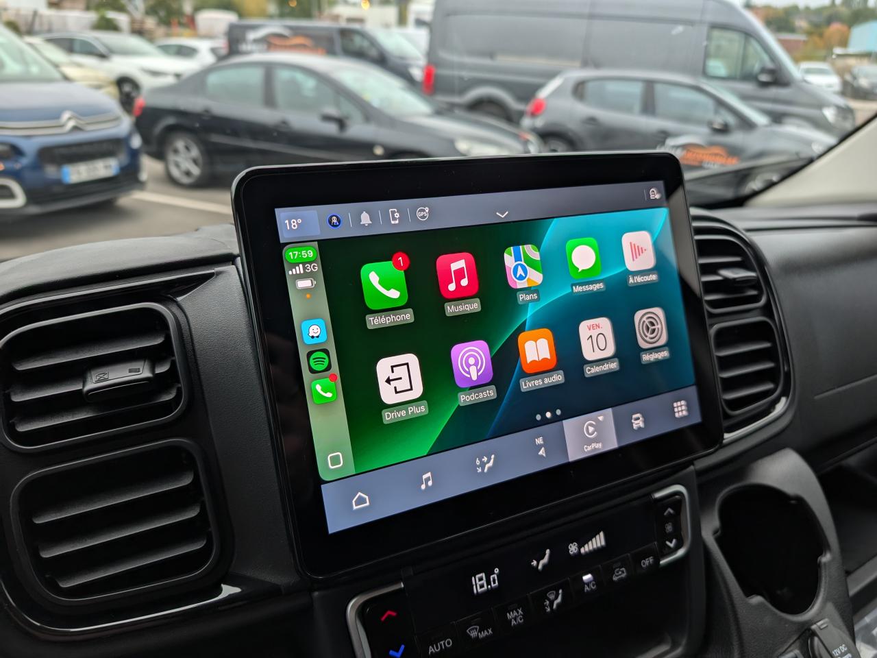 ABS avec aide au freinage d'urgenceAide au stationnement arrièreAirbag conducteurAirbag passagerAlternateur 180 AAppui-têtes pleinsAvertisseur sonore de marche arrièreBanquette passager biplaceBluetoothBoitier Télématique Autonome (BTA)Capacité de batterie : 95 AhCapteur de pression des pneumatiquesClimatisation manuelleCloison tôléeCondamnation centralisée avec plipContrôle de stabilité de la remorque (TSM)Crochets d'arrimage latérauxDirection assistée électriqueESP incluant l'antipatinage ASR et l'aide au démarrage en penteFeux avant diurnesKit de réduction de CO2Kit de réparation "Fix et Go"Lève-vitres électriques avant avec séquentiel montée / descente et antipincement côté conducteurPack Sécurité (ADAS)Pare-choc avant grainéPeinture pastel Blanc IcyPort USBPorte latérale coulissante tôlée côté droitPorte-gobelets au milieu du tableau de bordPortes arrières battantes tôléesProjecteurs halogèneRadio Numérique DABRappel de bouclage de ceintureRégulateur et limiteur de vitesseRéservoir d'urée (AdbLue) de 19lRéservoir de 90 litresRétroviseurs extérieurs électriques et dégivrantsRoues acier 16"Sellerie tissu crêpe noirSiège conducteur avec accoudoir, réglage lombaire et hauteurSystème audio 5''Système de stabilisation en cas de vent latéralVitres avant électriques séquentielles (à la descente côté passager)Volant réglable en hauteur