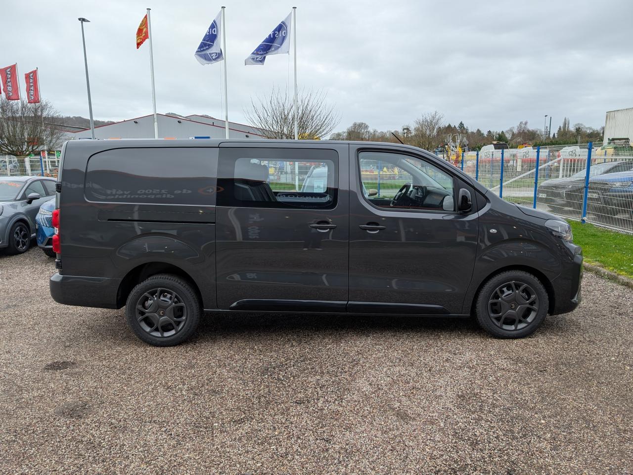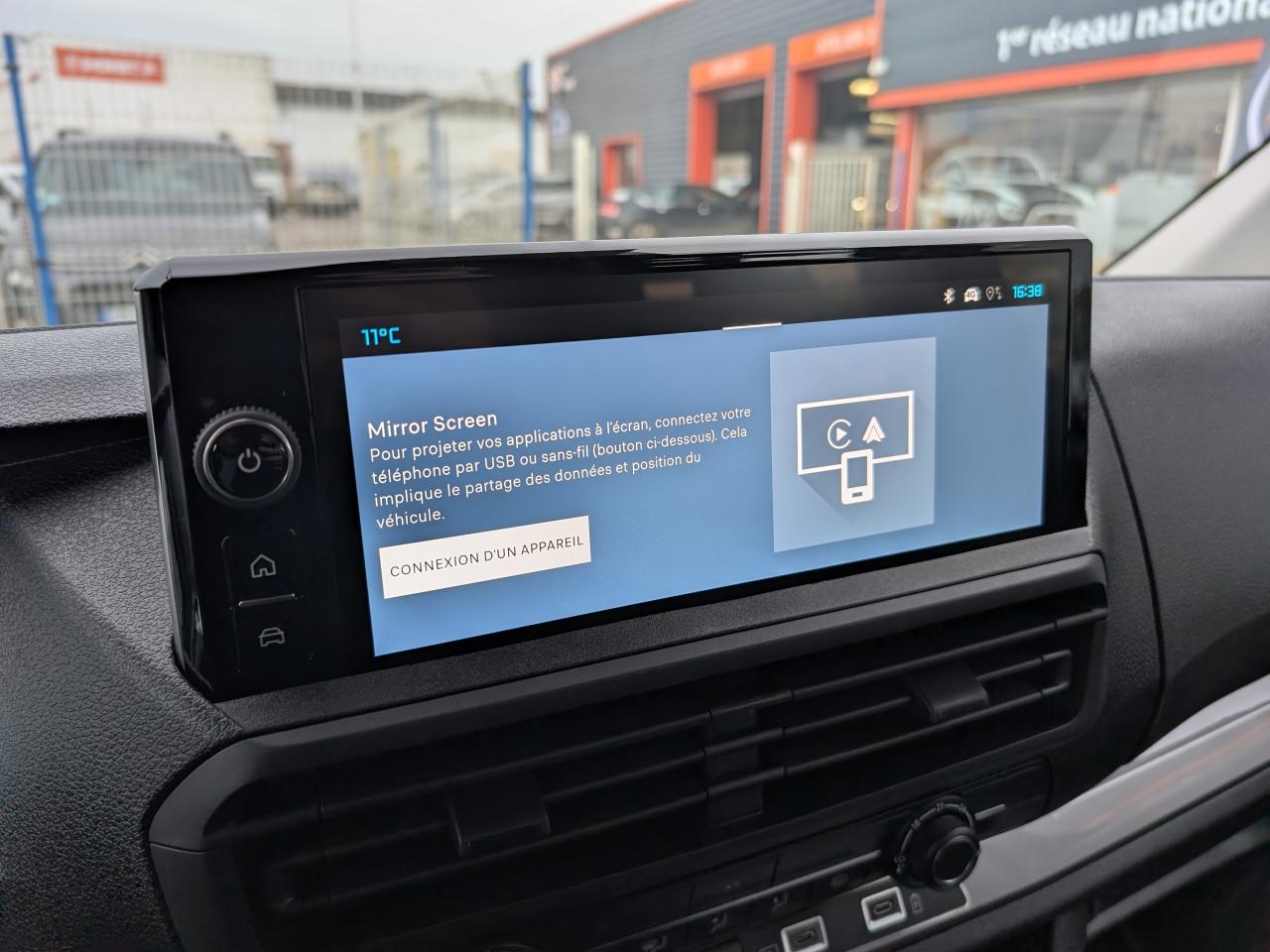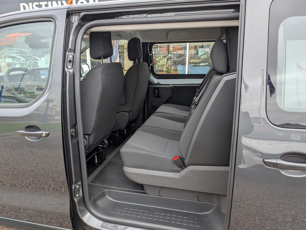 2 plips HF 3 boutons avec fonction selectivité6 anneaux d'arrimage en zone de chargementAide au démarrage en côteAide au stationnement arrièreAirbag frontaux conducteur et passagerAirbags latéraux AV thoraxAirbags rideauxAnti-patinage (ASR)Baguettes latérales noires teintées masseBanquette fixe 3 places en rang 2 avec appui-tête réglables et 2 accoudoirs, avec coffre de rangement amovible sous assises gauche et centrale et avec zone pour charge longue sous assise droiteBoîtier de connectivité télématiqueBoucliers avant et arrière teintés masseCharge utile majoréeClimatisation manuelleCloison pleine PVC avec vitre plexiglassCombiné numérique LCD noir et blancCommandes au volant (audio+régulateur vitesse)Coques de rétroviseurs extérieurs teintées masseDétection de sous-gonflage des pneumatiquesEssuie-glaces avant automatique avec détecteur de pluie et allumage automatique des feuxGarnitures pavillon habitacle en rang 2ISOFIX & Top Tether au rang 2Kit anticrevaison (compresseur et produit de colmatage)Lève-vitres avant électriques séquentielsPack SécuritéPare-brise feuilleté et acoustiquePoignée(s) intérieure(s) de porte(s) latérale(s) coulissante(s)Poignées de portes teintés massePorte latérale coulissante droite vitréePortes battantes arrière tôlées 50/50 à ouverture 180°Prédisposition "témoin de non-bouclage R2" (faisceau + afficheur), sans ceinturesPrise 12v dans la boîte à gantsProjecteurs halogènes avec feux diurnes intégrésRadio DAB Bluetooth avec écran tactile 5'' monochrome + 4 HP (2 tweeters + 2 woofers) + 1 prise USB-ARang 1 : banquette passager 2 places avec appuie-têtes réglables en hauteur et rangement sous assiseRégulateur et limiteur de vitesseRétroviseur intérieur prismatiqueRétroviseurs extérieurs électriques et dégivrantsRevêtement de sol Rangs 1 et 2 revêtu TPORoues tôles peintes grises 16" avec cabochon noirSécurité enfants manuelleSellerie Tissu bi-ton Noir et GrisSiège conducteur individuel avec appui-tête réglable en hauteur et avec accoudoir - Réglage : longueur, inclinaison, réhausse et rabattable (si 1 PLC) ou lombaire (si 2 PLC)Système de contrôle de trajectoire (ESP), Antiblocage des roues (ABS) et Assistance au freinage d'urgence (AFU)Vitres latérales fixes surteintées acoustiques en rang 2Volant réglable en hauteur et en profondeur