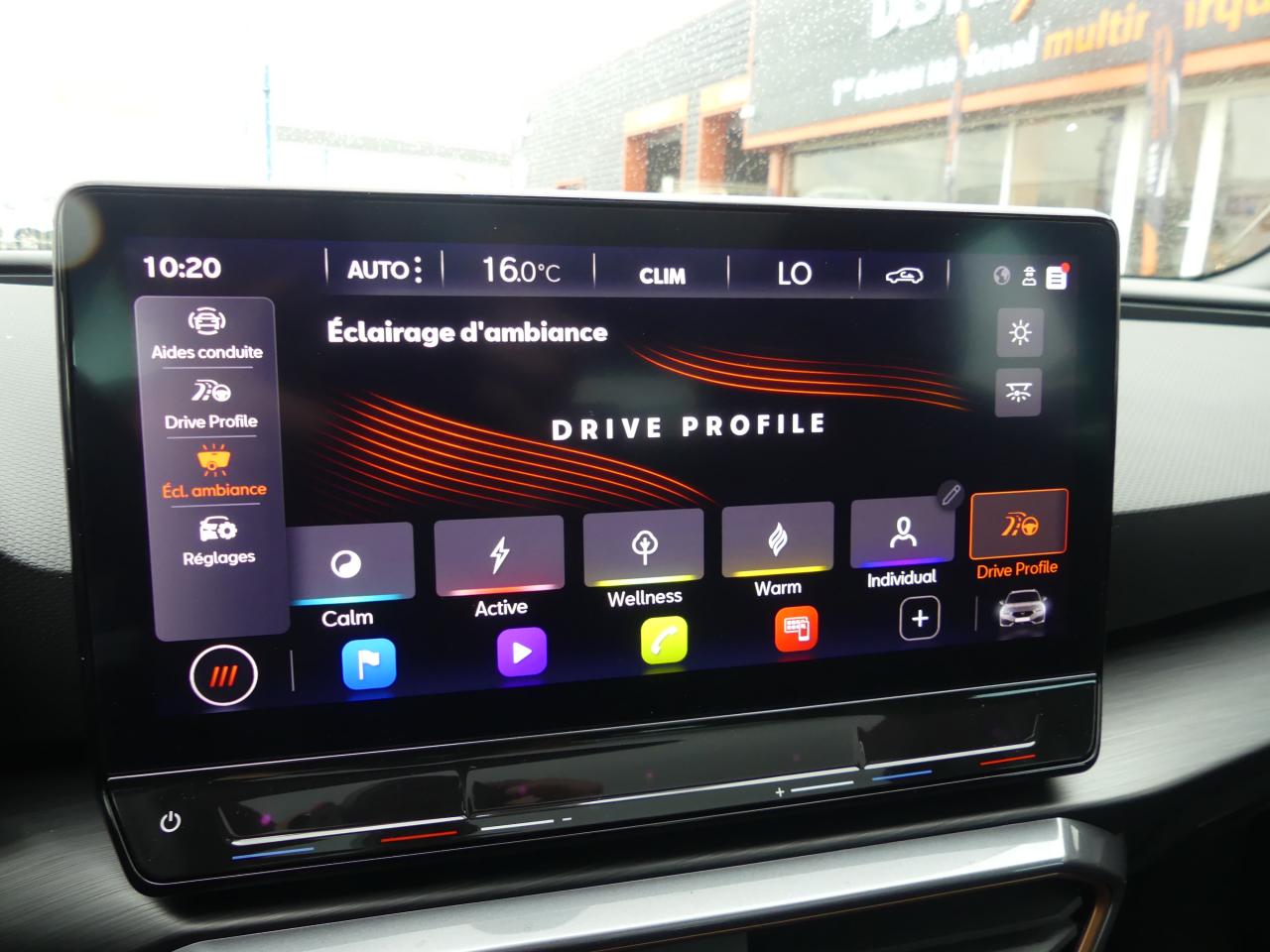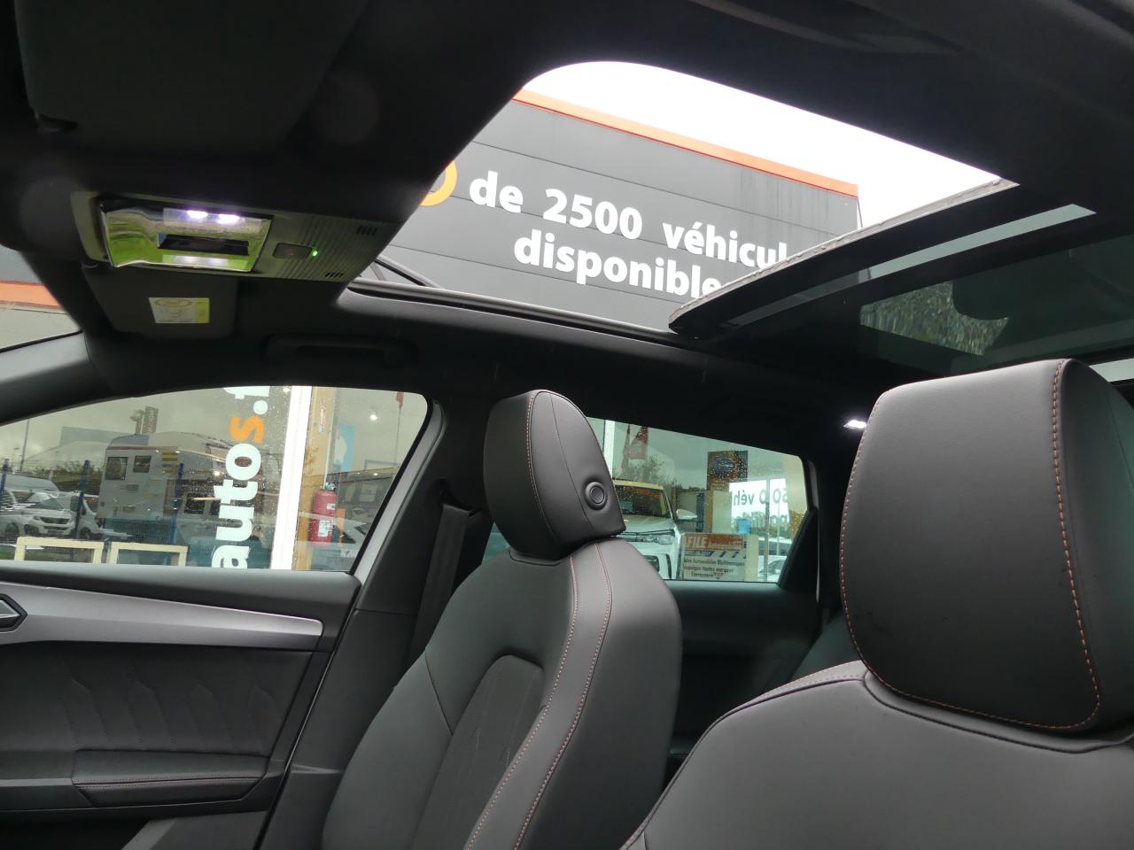 4 prises USB-C éclairées6 haut-parleursAccès et démarrage mains-libresAccoudoir central avantAide au stationnement avant/arrièreAirbag central avantAirbags latéraux et rideauxAppel d'urgence - EcallBandeau arrière "Infinite Light" intégrant le logo CUPRA lumineux, avec signature lumineuse Tri-LED et cérémonie de bienvenueBluetoothCaméra de reculCiel de pavillon noirClimatisation automatique Climatronic tri-zoneConnectivité smartphone Apple CarPlay & Android Auto sans filConnectivity Box avec chargeur à inductionContrôle vocalCUPRA BoxCUPRA ConnectDesign Intérieur PureDétecteur de pluie et allumage automatique des projecteursDigital Cockpit : combiné d’instruments digital haute résolution couleur de 10,25"Direction dynamiqueDossiers de banquette AR rabattables 2/3 1/3Double-sortie d'échappement noire styliséeEclairage d'ambiance intérieur intelligentEclairage de bienvenue avec projection du logo CUPRA au solFixations Isofix et Toptether aux sièges arrièreFonction 'Coming Home'Front Assist avec détection des piétonsFull Link sans filJantes alliage 18'' Performance usinéesLampes de lecture AV et ARLane Assistant : assistant de maintien dans la voieLight Assist : Activation ou désactivation automatique des feux de routePalettes de changement de rapportsPare-soleil avant avec miroirs de courtoisie éclairésProjecteurs antibrouillard avec éclairage d'intersectionProjecteurs Full LED avec signature Tri-LEDRadio Numérique DABRails de toit Noir GlossyRégulateur de vitesse adaptatifRétroviseur intérieur électrochromeSeuils de porte CUPRA rétro-éclairésSièges avant à réglage lombaireSystème d'info-divertissement avec écran tactile HD 12,9" et touches de commandes tactiles rétro-éclairéesSystème de détection de la somnolence du conducteurSystème de reconnaissance des panneaux de signalisation TSR (Traffic Sign recognition)Vitres arrière surteintéesVolant Supersports Cupra avec boutons satellitesVolant Supersports CUPRA chauffant en cuir