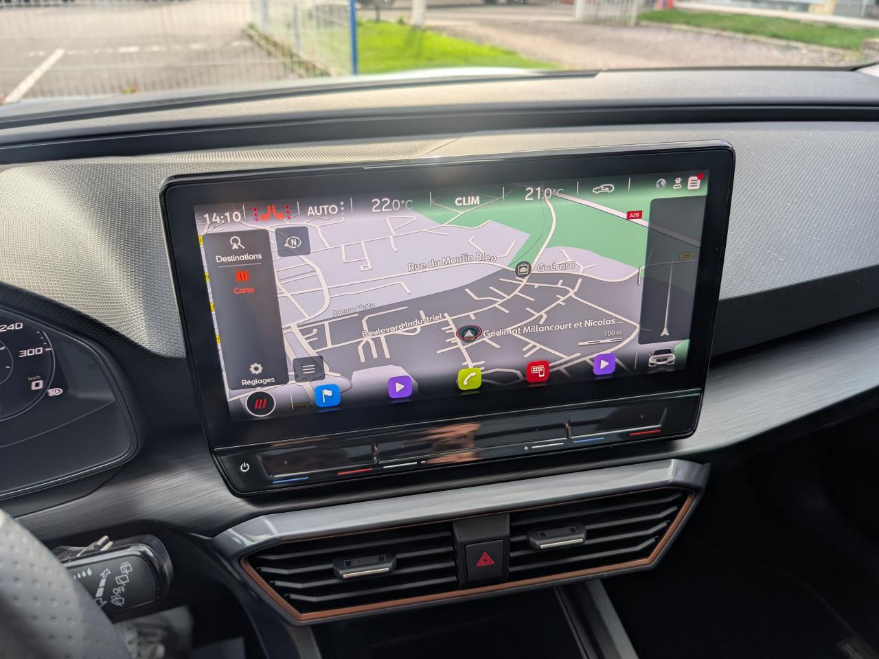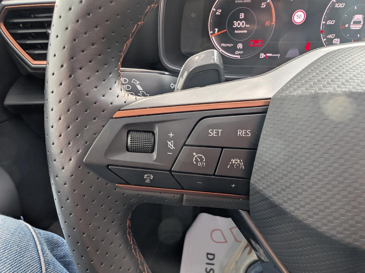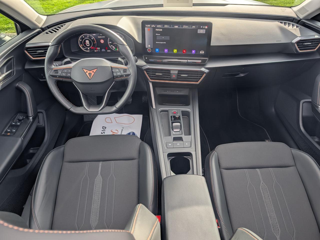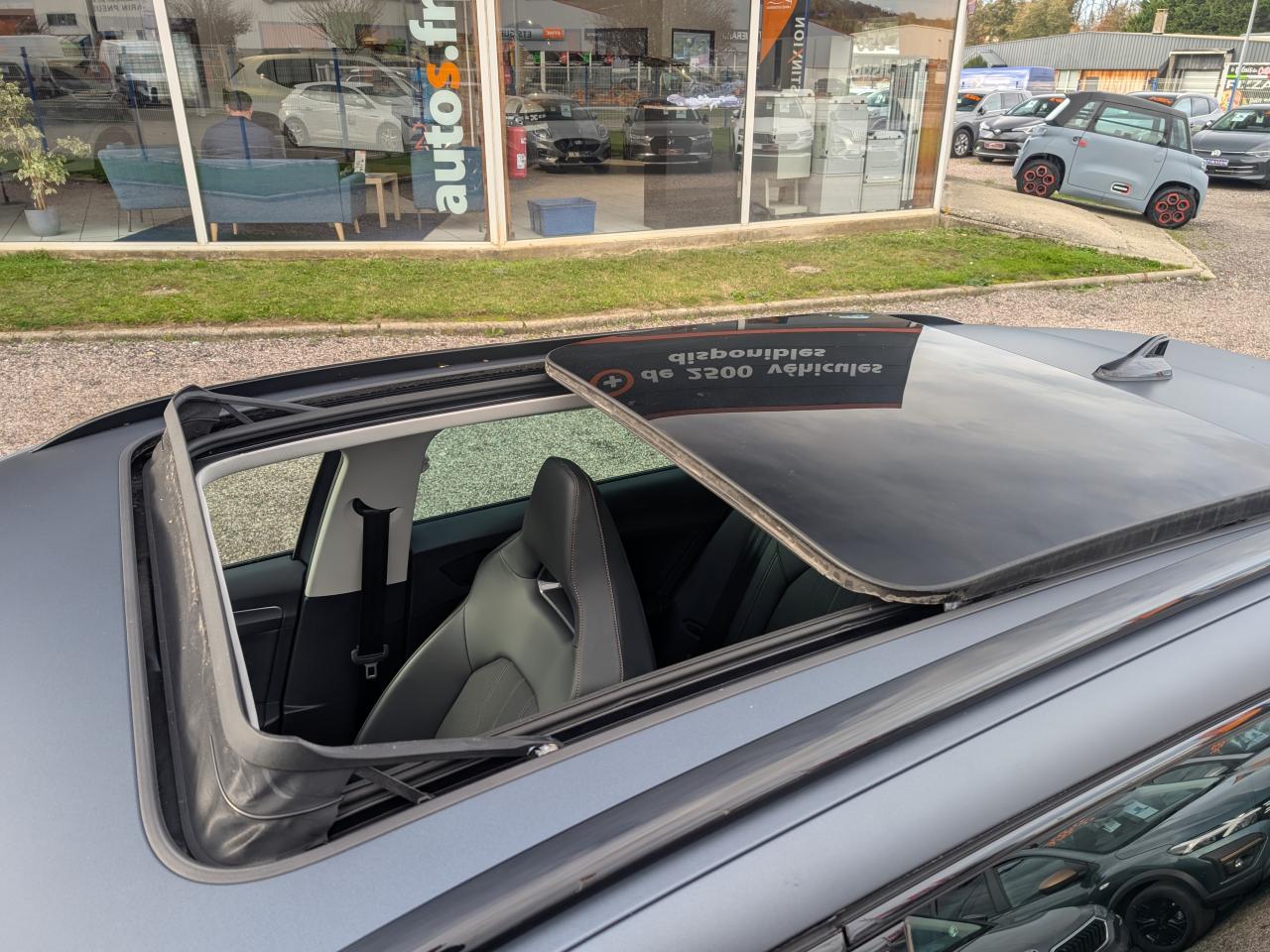 4 prises USB-C éclairées6 haut-parleursAccès et démarrage mains-libresAccoudoir central avantAide au stationnement avant/arrièreAirbag central avantAirbags latéraux et rideauxAppel d'urgence - EcallBandeau arrière "Infinite Light" intégrant le logo CUPRA lumineux, avec signature lumineuse Tri-LED et cérémonie de bienvenueBluetoothCaméra de reculCiel de pavillon noirClimatisation automatique Climatronic tri-zoneConnectivity Box avec chargeur à inductionContrôle vocalCUPRA Box (bracelet et coque de clé en fibre de carbone)CUPRA ConnectDesign Intérieur PureDétecteur de pluie et allumage automatique des projecteursDigital Cockpit : combiné d’instruments digital haute résolution couleur de 10,25"Direction dynamiqueDossiers de banquette AR rabattables 2/3 1/3Double-sortie d'échappement noire styliséeEclairage d'ambiance intérieur intelligentEclairage de bienvenue avec projection du logo CUPRA au solFixations Isofix et Toptether aux sièges arrièreFonction 'Coming Home'Front Assist avec détection des piétons et des cyclistesFull Link sans fil (Android Auto + Apple CarPlay)Hayon électrique + fonction Virtual PedalJantes alliage 18'' Performance usinéesLampes de lecture AV et ARLane Assistant : assistant de maintien dans la voieLight Assist : Activation ou désactivation automatique des feux de routePalettes de changement de rapportsPare-soleil avant avec miroirs de courtoisie éclairésProjecteurs antibrouillard avec éclairage d'intersectionProjecteurs Full LED avec signature Tri-LEDRadio Numérique DABRails de toit Noir GlossyRégulateur de vitesse adaptatifRétroviseur intérieur électrochromeSeuils de porte CUPRA rétro-éclairésSystème d'info-divertissement avec écran tactile HD 12,9" et touches de commandes tactiles rétro-éclairéesSystème de détection de la somnolence du conducteurSystème de reconnaissance des panneaux de signalisation TSR (Traffic Sign recognition)Tapis de sol en matière recyclée avec surpiqûres cuivrées CUPRAVitres arrière surteintéesVolant Supersports Cupra avec boutons satellitesVolant Supersports CUPRA chauffant en cuir