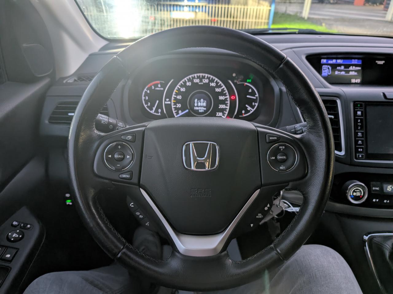 2 prises USB & prise HDMI3ème feu stop surélevé6 haut-parleursAccoudoir central arrièreAccoudoir central avantAide à la stabilité au remorquage (TSA)Aide au démarrage en côte (HSA)Airbag conducteur à double mode de déclenchement (i-SRS)Airbag passager déconnectableAirbags latéraux (avant)Airbags rideauxAllumage automatique des projecteursAncrages IsofixAntenne de toit « aileron de requin »Antiblocage des roues (ABS)Appuie-tête actifs à l'avantAssistance de freinage (BA)Baguettes de toit couleur carrosserieBanquette arrière Magique (rabattable 60/40 en un seul geste)Cache-bagagesCaméra de reculCeintures de sécurité arrière à prétensionneursCeintures de sécurité avant à prétensionneurs à double déclenchementClimatisation automatique bi-zoneCompartiment pour lunettesDirection assistée électrique adaptative (MA-EPS)Eclairage d'ambiance (plafond)Eclairage de boîte à gantsEclairage de courtoisie intérieurEclairage du coffreEmplacement de plaque arrière chroméEssuie-glace à déclenchement automatiqueFeux de jour à LEDFixations et filet de coffreFonction ECON déconnectableHonda CONNECTIndicateur de changement de rapport optimal (SIL)Insert de tableau de bord façon carbone couleur noireJantes alliage 17’’ Noir BerlinaLave-phares haute pressionLiseuses (avant)Miroir de conversationMiroir de courtoisie éclairé sur pare-soleil passager et conducteurOrdinateur de bord intelligent i-MIDPhares halogènesPneumatiques 225/65R17Poches aumonières au dos des sièges conducteur et passagerPoignées de porte intérieures chroméesPoignées de portes couleur carrosseriePommeau de levier de vitesses en cuirPrise 12V x 3 (tableau de bord, console centrale et coffre)Projecteurs antibrouillardRadars de stationnement (4 capteurs avant et 4 capteurs arrière)Réception radio numérique DAB+Réglage électrique du soutien lombaire côté conducteurRégulateur et limiteur de vitesseRépartiteur électronique de freinage (EBD)Rétroviseur extérieur passager avec fonction reculRétroviseur intérieur électrochromeRétroviseurs extérieurs asphériquesRétroviseurs extérieurs rabattables électriquement et télécommandésRétroviseurs extérieurs réglables et dégivrants électriquementRoue de secours temporaire type galetteSellerie tissuSiège conducteur avec réglage manuel en hauteurSièges avant chauffantsSignal de freinage d'urgence automatiqueSystème actif de freinage d'urgence en ville CTBA (City-Brake Active System)Système d'alarmeSystème d'immobilisation électroniqueSystème de coupure automatique du moteur à l'arrêt Auto StopSystème de surveillance de la pression des pneumatiques (DWS)Système de téléphonie mains libres BluetoothSystème de temporisation de l'allumage/extinction des feuxVentilation arrièreVerrouillage centralisé (2 clés rétractables)Vitres arrières surteintéesVitres électriques arrière à impulsionVitres électriques avant à impulsionVitres électriques télécommandéesVolant gainé cuirVolant réglable en hauteur et en profondeurVSA (contrôle électronique de trajectoire)