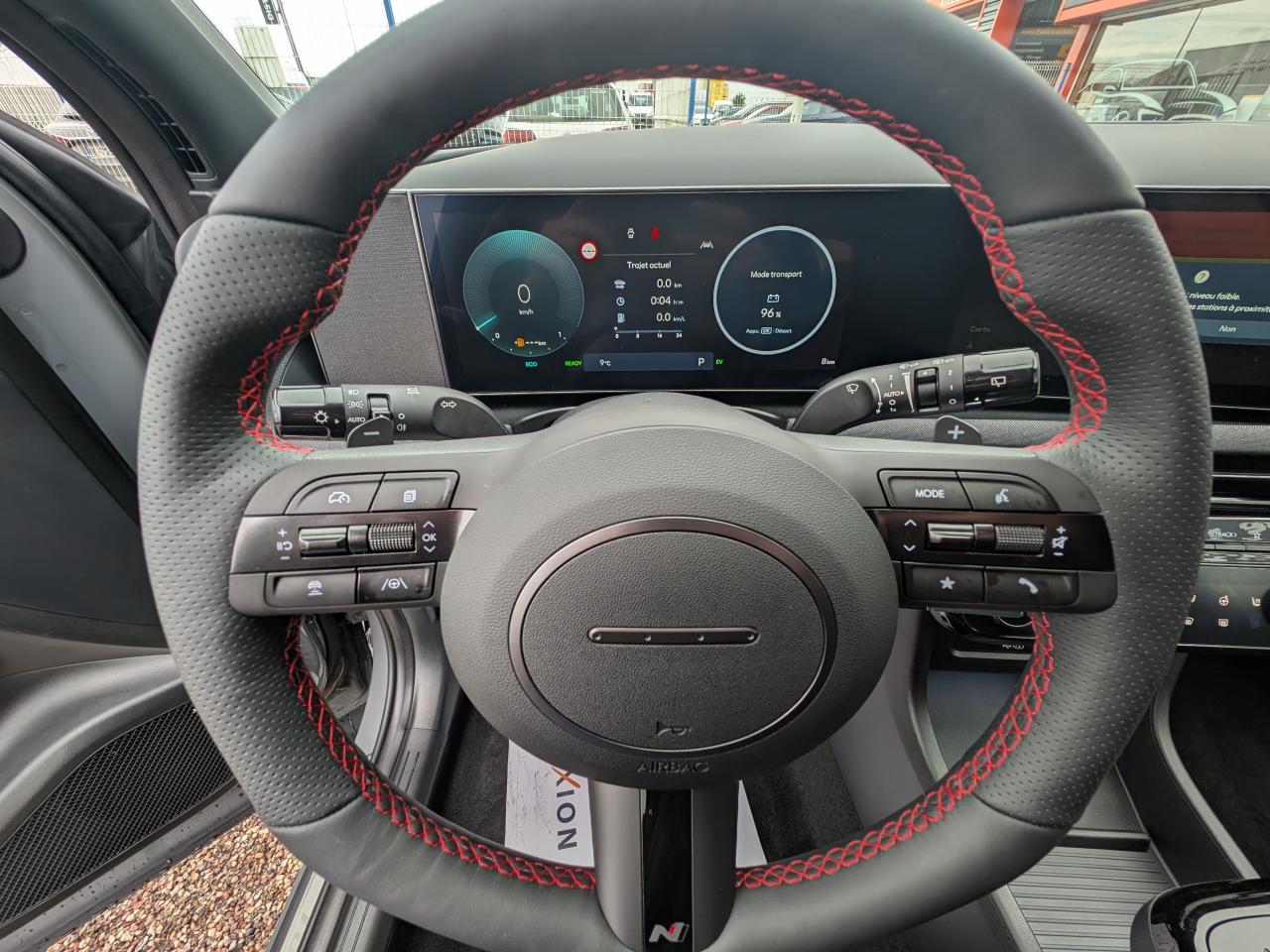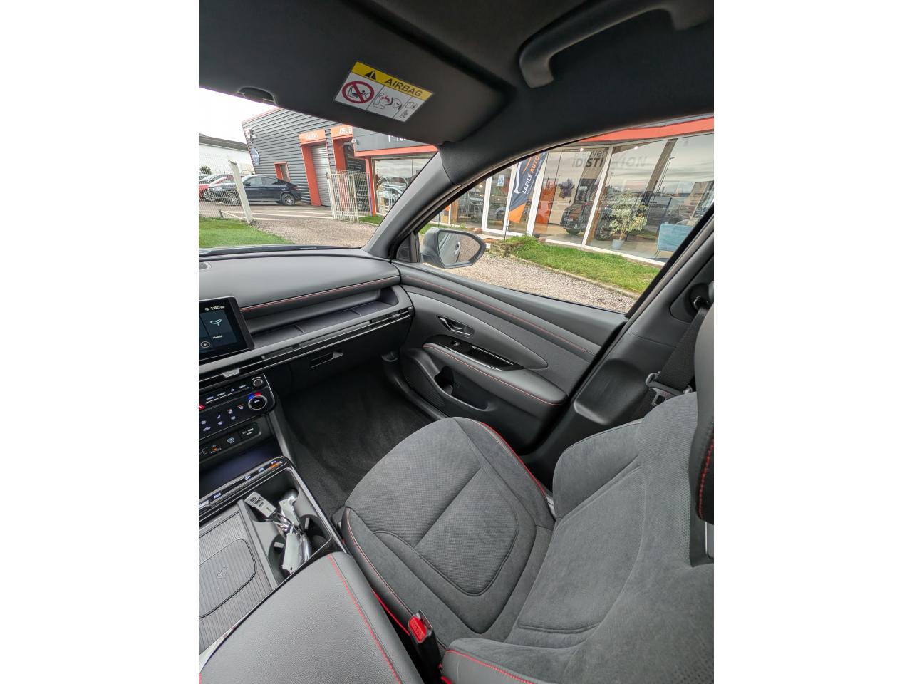 Accès et démarrage mains-libresAccoudoirs avant et central arrière avec porte-gobeletsAide au démarrage en côteAide au stationnement arrièreAide au stationnement avantAirbag central avantAirbag passager déconnectableAirbags conducteur et passagerAirbags latéraux avantAirbags rideaux avant/arrièreAlarme périmétriqueAlerte de circulation transversale à l'arrière avec fonction freinageAlerte de présence de passager arrière avec capteur ultrasonAllumage automatique des projecteursAntenne de toit « aileron de requin »Appuie-tête avant et arrière règlables en hauteurAssistance active à la conduite sur autoroute (HDA)Assistance active au maintien et au suivi de voieAssistant de sortie du véhiculeBas de caisse et passages de roues couleur carrosserieBoucliers avant et arrière "N Line"Calandre chromée et noire "Parametric Dynamics N Line"Caméra de recul avec lignes de guidage activesCapteur de désembuage automatique du pare-briseChargeur sans fil pour smartphones compatiblesCiel de toit noirClignotants avant à LEDClimatisation automatique bi-zone avec capteur de désembuage automatiqueCoffre de rangement sous l'accoudoir de la console centrale avantCompteurs numériques 12,3"Connexion BluetoothContrôle de pression des pneus ( TPMS )Contrôle de trajectoire électronique (ESP) avec gestion de la stabilité pour remorqueContrôle de vitesse en descenteDirection assistée électrique asservie à la vitesseDossier arrière rabattable 40/20/40 à distance avec commande depuis le coffreDouble sortie d'échappementDrive ModeeCall : appel d'urgence automatique aux services de secours avec géolocalisation du véhiculeEclairage additionnel en virageEclairage d'ambiance intérieur à LED personnalisableFatigue Detection : Système de détection de fatigue du conducteurFeux arrière à LED avec bandeau lumineuxFeux de jour et de position avant à LED à effet miroirFeux de route intelligentsFilet de coffreFrein de parking électrique avec fonction Auto-HoldFreinage actif d'urgence avec détection des piétons et cyclistesFreinage d'urgence autonome avec fonction intersectionFreinage régénératif intelligentIntégration Apple CarPlay et Android Auto sans filJantes alliage 19'' "N Line"Jonc de vitres noirLimiteur de vitesse intelligentMise à jour du système à distance (OTA - Over The Air)Navigation Europe avec programme de mise à jour de la cartographie et services Hyundai LivePédalier façon aluminiumPalettes de récupération d'énergie au volantPare-brise avec film acoustiquePare-brise et vitres avant athermiquesPare-soleil intégrés dans les portes arrièrePlanche de bord avec insert rouge "N Line"Poches aumônières au dos des sièges avantPoignées de portes couleur carrosseriePoignées de portes intérieures grain métalPrise USB type C à l'avantPrises 12V (avant / coffre) et USB (avant / arrière)Projecteurs avant bi-LEDProtections avant et arrière grain métalProtections de seuils de portes grain métalRégulateur de vitesse adaptatif intelligent allant jusqu’à l’arrêtRétroviseur intérieur électrochromeRétroviseurs électriques dégivrants, rabattables électriquement avec répétiteur intégréRétroviseurs extérieurs noirs brillantsRadio Numérique DABRails de toitReconnaissance des panneaux de limitation de vitesseSellerie "N Line" cuir / alcantara avec surpiqûres rougesServices connectés BlueLink avec carte SIMSiège conducteur à réglage lombaire électriqueSiège passager avant réglable en hauteurSièges arrière inclinablesSièges avant chauffantsSurveillance des angles morts avec assistance au changement de voieSystème audio RDS, MP3, 4 haut-parleurs et 2 tweetersSystème de fixations ISOFIX pour siège enfant aux places latérales arrièreSystème de freinage anti multi-collisionsSystème multimédia avec écran couleur tactile 12,3" avec reconnaissance vocale en ligneTransmission à commande électriqueVerrouillage automatique des portes en roulantVide-poches dans portes avant/arrièreVitres arrière surteintéesVitres avant et arrière électriques séquentiellesVolant chauffantVolant réglable en hauteur et en profondeurVolant sport "N Line" gainé cuir avec surpiqûres rouges