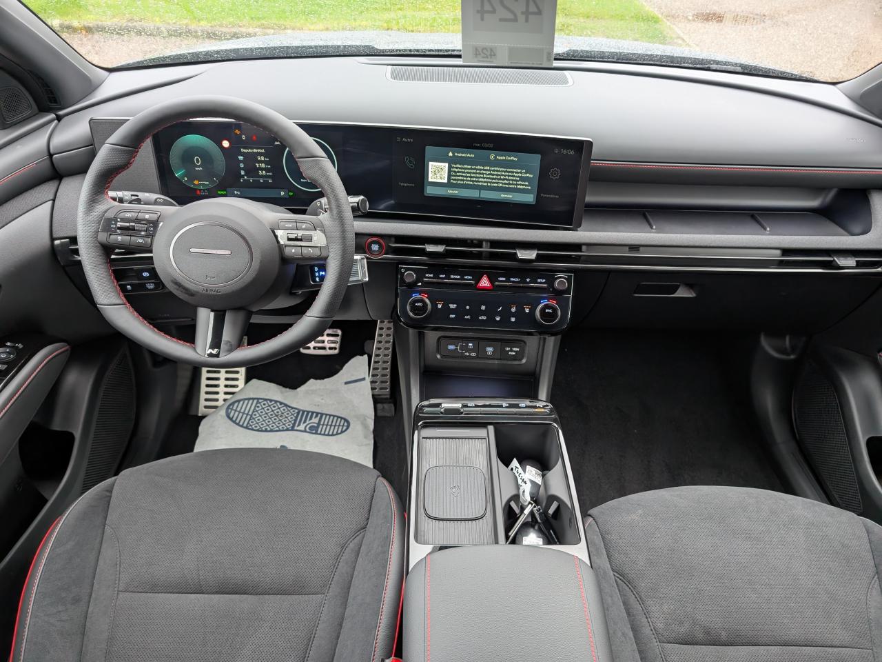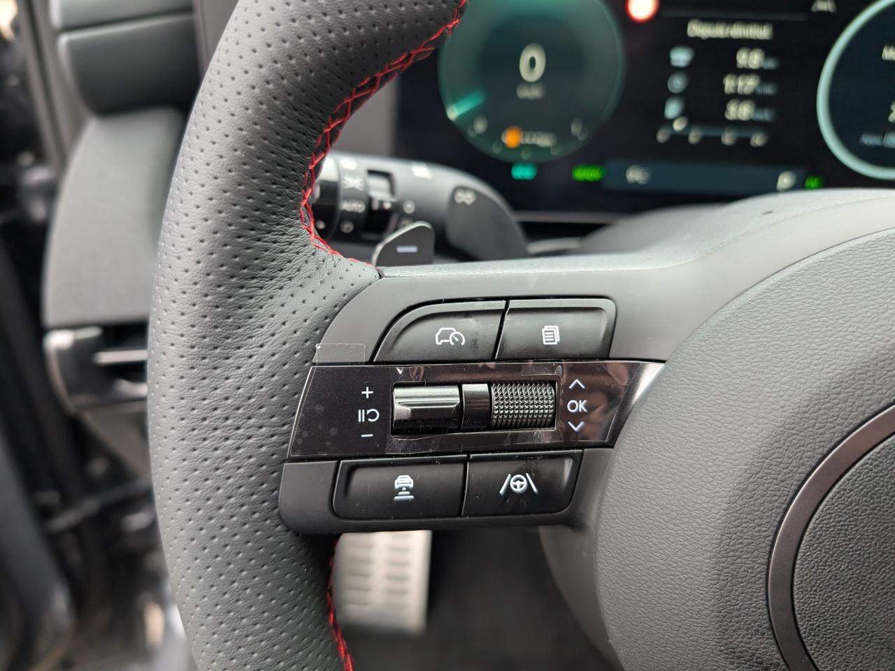 Accès et démarrage mains-libresAccoudoirs avant et central arrière avec porte-gobeletsAide au démarrage en côteAide au stationnement arrièreAide au stationnement avantAirbag central avantAirbag passager déconnectableAirbags conducteur et passagerAirbags latéraux avantAirbags rideaux avant/arrièreAlarme périmétriqueAlerte de circulation transversale à l'arrière avec fonction freinageAlerte de présence de passager arrière avec capteur ultrasonAllumage automatique des projecteursAntenne de toit « aileron de requin »Appuie-tête avant et arrière règlables en hauteurAssistance active à la conduite sur autoroute (HDA)Assistance active au maintien et au suivi de voieAssistant de sortie du véhiculeBas de caisse et passages de roues couleur carrosserieBoucliers avant et arrière "N Line"Calandre chromée et noire "Parametric Dynamics N Line"Caméra de recul avec lignes de guidage activesCapteur de désembuage automatique du pare-briseChargeur sans fil pour smartphones compatiblesCiel de toit noirClignotants avant à LEDClimatisation automatique bi-zone avec capteur de désembuage automatiqueCoffre de rangement sous l'accoudoir de la console centrale avantCompteurs numériques 12,3"Connexion BluetoothContrôle de pression des pneus ( TPMS )Contrôle de trajectoire électronique (ESP) avec gestion de la stabilité pour remorqueContrôle de vitesse en descenteDirection assistée électrique asservie à la vitesseDossier arrière rabattable 40/20/40 à distance avec commande depuis le coffreDouble sortie d'échappementDrive ModeeCall : appel d'urgence automatique aux services de secours avec géolocalisation du véhiculeEclairage additionnel en virageEclairage d'ambiance intérieur à LED personnalisableFatigue Detection : Système de détection de fatigue du conducteurFeux arrière à LED avec bandeau lumineuxFeux de jour et de position avant à LED à effet miroirFeux de route intelligentsFilet de coffreFrein de parking électrique avec fonction Auto-HoldFreinage actif d'urgence avec détection des piétons et cyclistesFreinage d'urgence autonome avec fonction intersectionFreinage régénératif intelligentIntégration Apple CarPlay et Android Auto sans filJantes alliage 19'' "N Line"Jonc de vitres noirLimiteur de vitesse intelligentMise à jour du système à distance (OTA - Over The Air)Navigation Europe avec programme de mise à jour de la cartographie et services Hyundai LivePédalier façon aluminiumPalettes de récupération d'énergie au volantPare-brise avec film acoustiquePare-brise et vitres avant athermiquesPare-soleil intégrés dans les portes arrièrePlanche de bord avec insert rouge "N Line"Poches aumônières au dos des sièges avantPoignées de portes couleur carrosseriePoignées de portes intérieures grain métalPrise USB type C à l'avantPrises 12V (avant / coffre) et USB (avant / arrière)Projecteurs avant bi-LEDProtections avant et arrière grain métalProtections de seuils de portes grain métalRégulateur de vitesse adaptatif intelligent allant jusqu’à l’arrêtRétroviseur intérieur électrochromeRétroviseurs électriques dégivrants, rabattables électriquement avec répétiteur intégréRétroviseurs extérieurs noirs brillantsRadio Numérique DABRails de toitReconnaissance des panneaux de limitation de vitesseSellerie "N Line" cuir / alcantara avec surpiqûres rougesServices connectés BlueLink avec carte SIMSiège conducteur à réglage lombaire électriqueSiège passager avant réglable en hauteurSièges arrière inclinablesSièges avant chauffantsSurveillance des angles morts avec assistance au changement de voieSystème audio RDS, MP3, 4 haut-parleurs et 2 tweetersSystème de fixations ISOFIX pour siège enfant aux places latérales arrièreSystème de freinage anti multi-collisionsSystème multimédia avec écran couleur tactile 12,3" avec reconnaissance vocale en ligneTransmission à commande électriqueVerrouillage automatique des portes en roulantVide-poches dans portes avant/arrièreVitres arrière surteintéesVitres avant et arrière électriques séquentiellesVolant chauffantVolant réglable en hauteur et en profondeurVolant sport "N Line" gainé cuir avec surpiqûres rouges