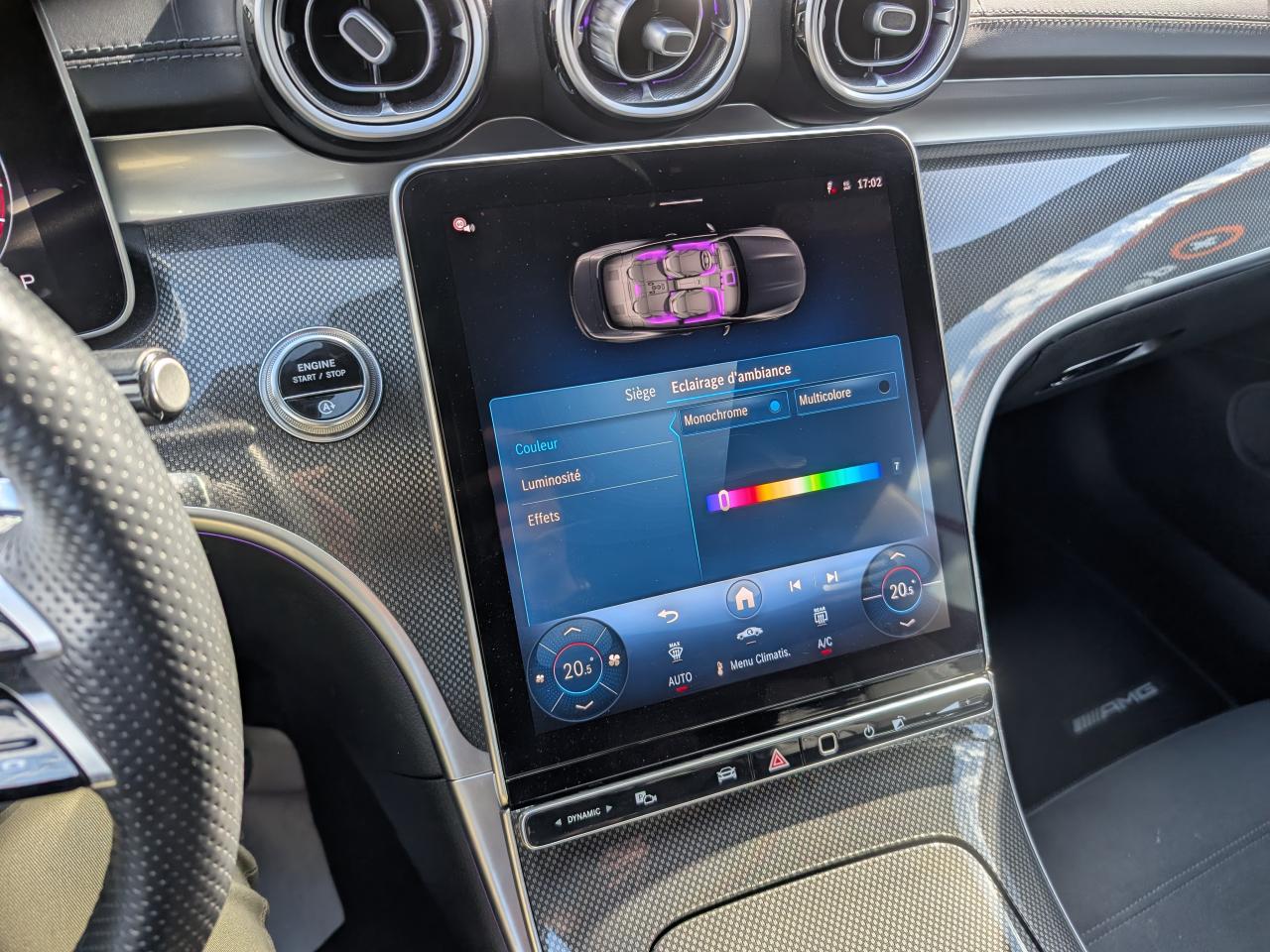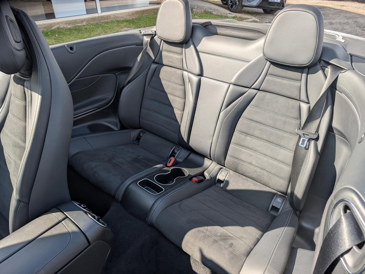 ABS (antiblocage de roues), ASR (antipatinage) et BAS (freinage d'urgence assisté)ADAPTIVE BRAKE avec fonction HOLD et aide au démarrage en côte, préremplissage et séchage des freins par freinage en cas de pluieAffichage de l'état des ceintures arrière (bouclées/non bouclées) sur le combiné d'instrumentsAirbag central entre les sièges avantAirbag frontaux conducteur et passagerAirbag genoux conducteurAirbags latéraux (thorax / bassin) avantAirbags rideauxAlterno-démarreur intégré avec réseau de bord 48VApproche-ceintureAssistant de feux de routeAssistant de franchissement de ligne actifAttention Assist : système de détection de somnolenceBaguettes de seuil éclairées à l'avant avec monogramme "Mercedes-Benz"Boîte à gants éclairéeBoîte de vitesses automatique à 9 rapports 9G-TRONICBuses d’aération avec éléments chromés argentésCalandre en forme de A avec motif étoilé Mercedes-Benz et étoile Mercedes intégrée ainsi que lamelle gris foncé mat avec insert chromé et cadre de calandre noirCapot moteur actif pour la protection des piétonsCapote en tissu noirCeintures de sécurité 3 points avec rétracteurs à l'avant et limiteurs d'effort (x4)Ciel de pavillon en tissu noirClignotants à commande confort par impulsionsClimatisation automatique THERMATIC à 2 zonesColonne de direction réglable manuellement en hauteur et en profondeurConnexion Bluetooth pour téléphone portableConsole centrale Noir brillantContrôle de la pression des pneumatiquesDésactivation automatique de l'airbag passager AVDétecteur de pluie et allumage automatique des projecteursDossiers arrière rabattablesDYNAMIC SELECT avec les programmes de conduite « ECO », « Confort », « Sport » et « Individual »Eclairage d’ambianceEcran central tactile LCD haute résolution de 30,2 cm (11,9") légèrement incliné vers le conducteur, en liaison avec système multimédia MBUXEcran conducteur LCD de 31,2 cm (12,3")ESP (régulation de comportement dynamique) avec assistant de conduite dynamique en virageEssuie-glace à déclenchement automatiqueFeux de stop adaptatifsFixations iSize pour siège-enfant avec sangle Top Tether aux places extérieures arrièreFonction d'arrêt/redémarrage "Stop/Start ECO" avec commutateur de désactivation manuelleFonctionnalités élargies MBUXFrein de stationnement électriqueFrein multi-collisionFreinage d'urgence assisté actif (alerte visuelle et sonore en cas de risque de collision et freinage d'urgence autonome dans certaines conditions)Garnitures en ARTICO / microfibre MICROCUT noirGilet de sécurité fluorescent pour conducteurHANDS-FREE ACCESS pour ouverture du coffre à l'aide du piedIndicateur de température extérieureInserts décoratifs en structure métalliqueIntégration avec les smartphones via Apple Car Play et Android AutoJupe arrière AMG façon diffuseur avec insert noirJupe avant AMG avec prises d’air sportives et insert décoratif chroméKit anti-crevaison TIREFITLecteur d'empreinte digitaleLève-vitres électrique (x4) à commande séquentielle et dispositif anti-pincementManuel d'utilisation en françaisModule de communication (5G) pour l’utilisation des services Mercedes me connectNavigation MBUX PremiumPack Confort CabrioletPack MémoirePack RangementPack RétroviseursPack Stationnement avec caméra de reculPack USBPalettes de changement de rapports au volantPartie supérieure de la planche de bord et lignes de ceinture en ARTICO noirPédalier sport AMG en acier inoxydable brossé avec picots en caoutchouc noirsPneus étéPortes avec inserts décoratifs noirs brillants, bordure chromée argentée et commutateurs chromés argentésPré-équipement pour la remise de clé numériquePRE-SAFEProjecteurs LED Hautes Performances avec Assistant de feux de routeRéception radio numérique (DAB)Réservoir de carburant de 66 litresSécurité enfant avec verrouillage manuel des portes arrière et électrique des vitres arrièreServices à distanceSièges avant chauffantsSièges avec design sportif exclusif et appuie-tête intégréSuspension sportSystème d'accès et de démarrage sans cléSystème d'Appel d'Urgence Mercedes-BenzSystème d’échappement à deux enjoliveurs de sortie d’échappement intégrés au pare-chocsSystème de contrôle de la pression des pneusSystème de freinage avec disques de frein avant surdimensionnésSystème de recharge sans fil pour smartphone situé dans le compartiment de rangement avantTapis de sol noirs avec monogramme AMGTEMPOMAT (régulateur et limiteur de vitesse)Train de roulement sport avec direction directe sportUnité de commande au toit en finition noir brillantVolant sport multifonction en cuir Nappa avec doubles branches horizontales, méplat dans la partie inférieure, perforé dans la zone de préhension, avec cache et palettes de changement de rapport chromées argentées