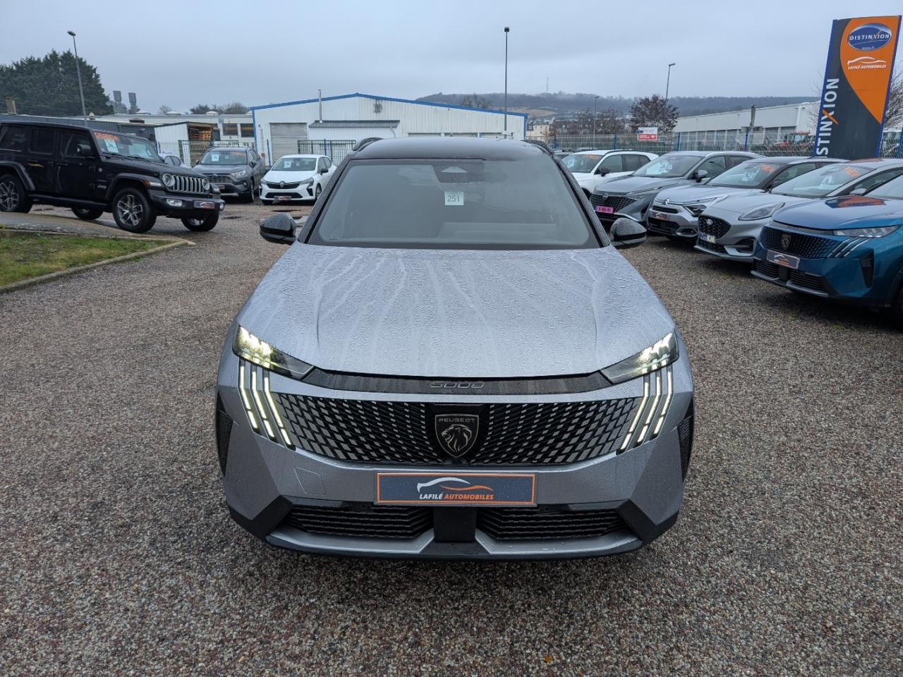 1 prise USB C (Data & charge) et 1 prise USB C (Charge) à l'avant2 ports USB-C de recharge à l’arrière2 prises 12V dans la console centrale avant et dans le coffre2 télécommandes 3 boutons6 Airbags6 haut-parleurs (2 tweeters et 2 woofers à l'avant et 2 larges bandes à l'arrière)Accès et démarrage mains libres ProximityAir conditionné automatique tri zoneAirbags frontaux conducteur et passager (déconnectable côté passager)Airbags latéraux conducteur et passager avantAirbags rideaux de tête aux places avant et arrièreAllumage automatique et commutation adaptative des projecteursBandeau entre les feux arrière Noir laqué avec lettrage 'Peugeot’Bandeau entre les projecteurs Noir laqué avec logo ‘5008'Banquette 2 places au rang 3 avec dossiers rabattables 50/50Banquette rang 2 avec accoudoir centralBanquette rang 2 coulissante 60/40, avec dossiers inclinables et rabattables 40/20/40, avec fonction Easy Access aux places du rang 3Barres de toit longitudinales noires brillantesBoite à gants et rangement de console éclairés à LEDCalandre couleur carrosserieCommutation automatique des feux de routeConnect One (Abonnement 10 ans)Console centrale avec décor tissu RIMINI chiné, façade Noir laqué et jonc Cast Stène, accoudoir tissu RIMINI chinéConsole centrale avec décor tissu RIMINI chiné, façade Noir laqué et jonc Gris Stène, accoudoir tissu RIMINI chinéDécor inférieur Gris MeteorDétecteur de sous-gonflage indirectDrive AssistEclairage d'ambiance indirect, jour & nuit sur la planche de bord, les panneaux de portes avant et sous l'écran panoramique 21'', associé aux modes de conduite, personnalisable en 8 couleursEclairage LED des caves de pieds avantEcopes latérales Noir laquéEnjoliveurs de passages de roues Noir grainéESP avec aide au démarrage en penteEssuie-glace à déclenchement automatiqueFeux arrière 3 griffes à LEDFeux arrière 3 griffes à LED 3DFonction Mirror Screen (Apple Carplay / Android Auto ) sans filFrein de stationnement électriqueHabitacle et ciel de pavillon noirHayon motorisé avec ouverture mains-libresJantes alliage 19'' diamantées BREDA Noir Orbital, vernis brillantJupe arriere inférieure Noir grainéJupe avant inférieure Noir grainéLécheurs de vitres masquésLève-vitres électriques avant et arrière, séquentiels et antipincementLimiteur de vitesseMonogrammes ailes avant : 'blason PEUGEOT'Monogrammes arrière ‘5008' et ' Hybrid ’Monogrammes avant : blason PEUGEOT et ‘5008'Navigation 3D ConnectéePack Safety PlusPanneaux de portes avec décor tissu RIMINI chiné, décor d’alcôve en Aluminium sérigraphié et jonc Cast Stène, accoudoirs TEP Isabella, surpiqûres Iced Clay à l'avantPanneaux de portes avec décor tissu RIMINI chiné, décor d’alcôve en Aluminium sérigraphié et jonc Gris Stène, accoudoirs TEP Isabella, surpiqûres Iced Clay à l'avantPare-brise feuilleté et acoustiquePare-chocs arrière avec décor Gris MeteorPare-soleil avec miroirs de courtoisie occultables éclairés à LEDPédalier aluminium et repose pied aluminiumPeugeot Connect SOS & AssistancePeugeot i-Cockpit panoramique avec écran incurvé et flottant 21’’ HDPeugeot i-Connect AdvancedPeugeot i-Toggles virtuels avec 10 raccourcis personnalisablesPlafonnier avant et liseuses arrière DOME à LEDPlafonnier avant et liseuses arrière i DOME à LEDPlanche de bord moussée avec décor tissu RIMINI chiné, décor d’alcôve en Aluminium sérigraphié, façade et aérateurs Noir laqué avec décor Cast StènePlanche de bord moussée avec décor tissu RIMINI chiné, décor d’alcôve en Aluminium sérigraphié, façade et aérateurs Noir laqué avec décor Gris StènePlancher de coffre modulable 2 positionsPoignées de maintien rétractables (x 4)Projecteurs Peugeot Pixel LED avec feux diurnes 3 griffes à LEDProtections inférieures de portes noires grainéesRadio DAB, Bluetooth (connexion 2 téléphones)Régulateur de vitesse adaptatif avec fonction Stop & GoRétroviseur intérieur électrochromeRétroviseurs extérieurs dégivrants à réglage et rabattement électriques, éclairage de seuilSellerie tissu NEW UZIRIS embossé accompagnement TEP Isabella, écharpe tissu RIMINI chiné, surpiqûres Iced ClaySeuil de portes avant inox avec lettrage ‘Peugeot’Siège conducteur avec réglage lombaire manuelSièges avant chauffantsSièges avant réglables en hauteur manuellementStores pare-soleil intégrés dans les portes arrièreSystème de fixation Isofix pour siège enfant aux places latérales du rang 2Toit et becquet arrière Black DiamondVisiopark 1Vitres arrière, custodes et lunette arrière surteintéesVolant chauffantVolant compact, cuir fleur lisse et perforé avec commandes intégrées Noir Laqué, décors Cast Stène , surpiqûres Iced Clay, insert Noir laqué avec badge ‘GT’Volant compact, cuir fleur lisse et perforé avec commandes intégrées Noir Laqué, décors Gris Stène , surpiqûres Iced Clay, insert Noir laqué avec badge ‘GT’