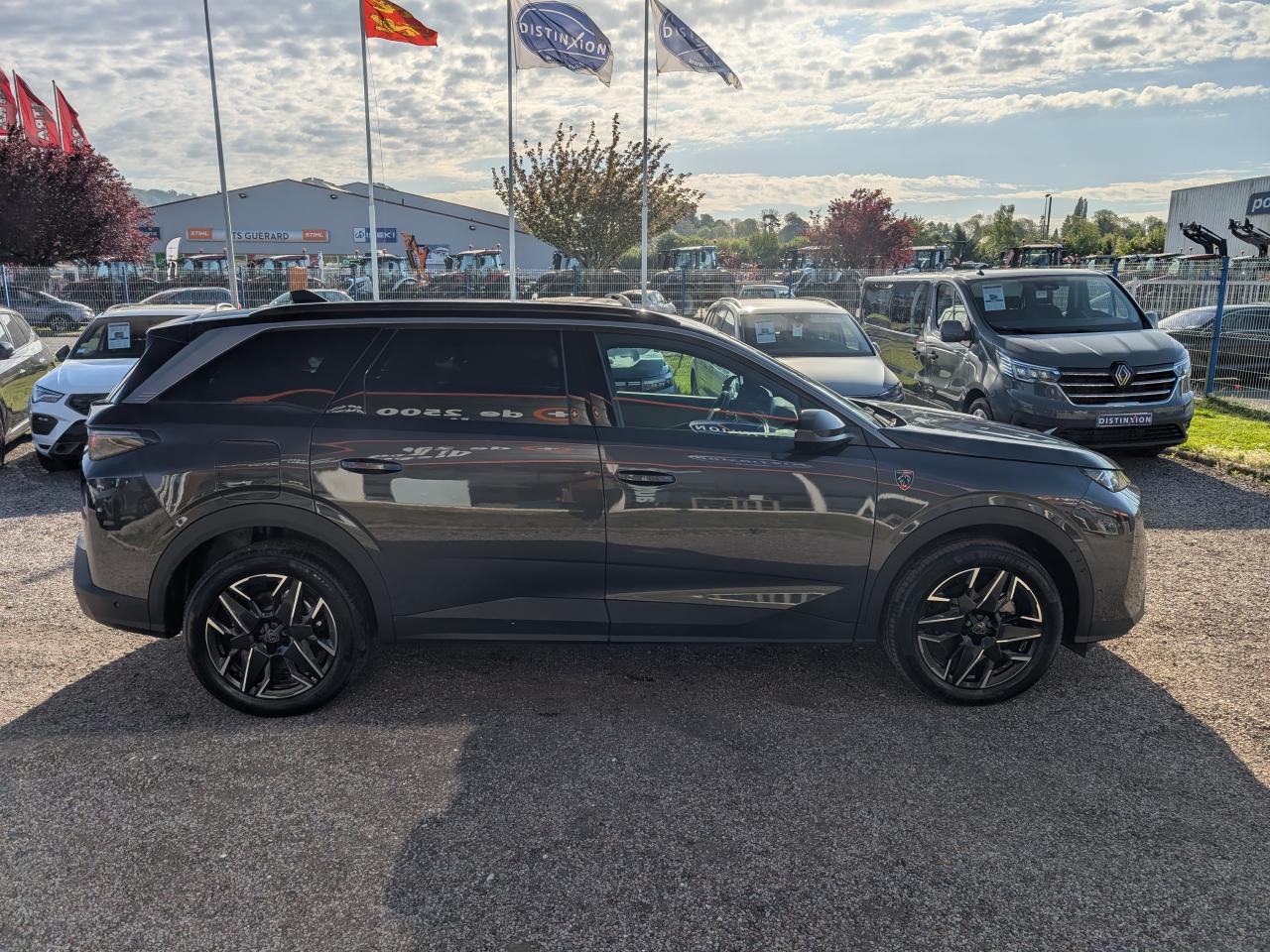 1 prise USB C (Data & charge) et 1 prise USB C (Charge) à l'avant2 ports USB-C de recharge à l’arrière2 prises 12V dans la console centrale avant et dans le coffre2 télécommandes 3 boutons6 Airbags6 haut-parleurs (2 tweeters et 2 woofers à l'avant et 2 larges bandes à l'arrière)Accès et démarrage mains libres ProximityAir conditionné automatique tri zoneAirbags frontaux conducteur et passager (déconnectable côté passager)Airbags latéraux conducteur et passager avantAirbags rideaux de tête aux places avant et arrièreAllumage automatique et commutation adaptative des projecteursBandeau entre les feux arrière Noir laqué avec lettrage 'Peugeot’Bandeau entre les projecteurs Noir laqué avec logo ‘5008'Banquette 2 places au rang 3 avec dossiers rabattables 50/50Banquette rang 2 avec accoudoir centralBanquette rang 2 coulissante 60/40, avec dossiers inclinables et rabattables 40/20/40, avec fonction Easy Access aux places du rang 3Barres de toit longitudinales noires brillantesBoite à gants et rangement de console éclairés à LEDCalandre couleur carrosserieCommutation automatique des feux de routeConnect One (Abonnement 10 ans)Console centrale avec décor tissu RIMINI chiné, façade Noir laqué et jonc Cast Stène, accoudoir tissu RIMINI chinéConsole centrale avec décor tissu RIMINI chiné, façade Noir laqué et jonc Gris Stène, accoudoir tissu RIMINI chinéDécor inférieur Gris MeteorDétecteur de sous-gonflage indirectDrive AssistEclairage d'ambiance indirect, jour & nuit sur la planche de bord, les panneaux de portes avant et sous l'écran panoramique 21'', associé aux modes de conduite, personnalisable en 8 couleursEclairage LED des caves de pieds avantEcopes latérales Noir laquéEnjoliveurs de passages de roues Noir grainéESP avec aide au démarrage en penteEssuie-glace à déclenchement automatiqueFeux arrière 3 griffes à LEDFeux arrière 3 griffes à LED 3DFonction Mirror Screen (Apple Carplay / Android Auto ) sans filFrein de stationnement électriqueHabitacle et ciel de pavillon noirHayon motorisé avec ouverture mains-libresJantes alliage 19'' diamantées BREDA Noir Orbital, vernis brillantJupe arriere inférieure Noir grainéJupe avant inférieure Noir grainéLécheurs de vitres masquésLève-vitres électriques avant et arrière, séquentiels et antipincementLimiteur de vitesseMonogrammes ailes avant : 'blason PEUGEOT'Monogrammes arrière ‘5008' et ' Hybrid ’Monogrammes avant : blason PEUGEOT et ‘5008'Navigation 3D ConnectéePack Safety PlusPanneaux de portes avec décor tissu RIMINI chiné, décor d’alcôve en Aluminium sérigraphié et jonc Cast Stène, accoudoirs TEP Isabella, surpiqûres Iced Clay à l'avantPanneaux de portes avec décor tissu RIMINI chiné, décor d’alcôve en Aluminium sérigraphié et jonc Gris Stène, accoudoirs TEP Isabella, surpiqûres Iced Clay à l'avantPare-brise feuilleté et acoustiquePare-chocs arrière avec décor Gris MeteorPare-soleil avec miroirs de courtoisie occultables éclairés à LEDPédalier aluminium et repose pied aluminiumPeugeot Connect SOS & AssistancePeugeot i-Cockpit panoramique avec écran incurvé et flottant 21’’ HDPeugeot i-Connect AdvancedPeugeot i-Toggles virtuels avec 10 raccourcis personnalisablesPlafonnier avant et liseuses arrière DOME à LEDPlafonnier avant et liseuses arrière i DOME à LEDPlanche de bord moussée avec décor tissu RIMINI chiné, décor d’alcôve en Aluminium sérigraphié, façade et aérateurs Noir laqué avec décor Cast StènePlanche de bord moussée avec décor tissu RIMINI chiné, décor d’alcôve en Aluminium sérigraphié, façade et aérateurs Noir laqué avec décor Gris StènePlancher de coffre modulable 2 positionsPoignées de maintien rétractables (x 4)Projecteurs Peugeot Pixel LED avec feux diurnes 3 griffes à LEDProtections inférieures de portes noires grainéesRadio DAB, Bluetooth (connexion 2 téléphones)Régulateur de vitesse adaptatif avec fonction Stop & GoRétroviseur intérieur électrochromeRétroviseurs extérieurs dégivrants à réglage et rabattement électriques, éclairage de seuilSellerie tissu NEW UZIRIS embossé accompagnement TEP Isabella, écharpe tissu RIMINI chiné, surpiqûres Iced ClaySeuil de portes avant inox avec lettrage ‘Peugeot’Siège conducteur avec réglage lombaire manuelSièges avant chauffantsSièges avant réglables en hauteur manuellementStores pare-soleil intégrés dans les portes arrièreSystème de fixation Isofix pour siège enfant aux places latérales du rang 2Toit et becquet arrière Black DiamondVisiopark 1Vitres arrière, custodes et lunette arrière surteintéesVolant chauffantVolant compact, cuir fleur lisse et perforé avec commandes intégrées Noir Laqué, décors Cast Stène , surpiqûres Iced Clay, insert Noir laqué avec badge ‘GT’Volant compact, cuir fleur lisse et perforé avec commandes intégrées Noir Laqué, décors Gris Stène , surpiqûres Iced Clay, insert Noir laqué avec badge ‘GT’