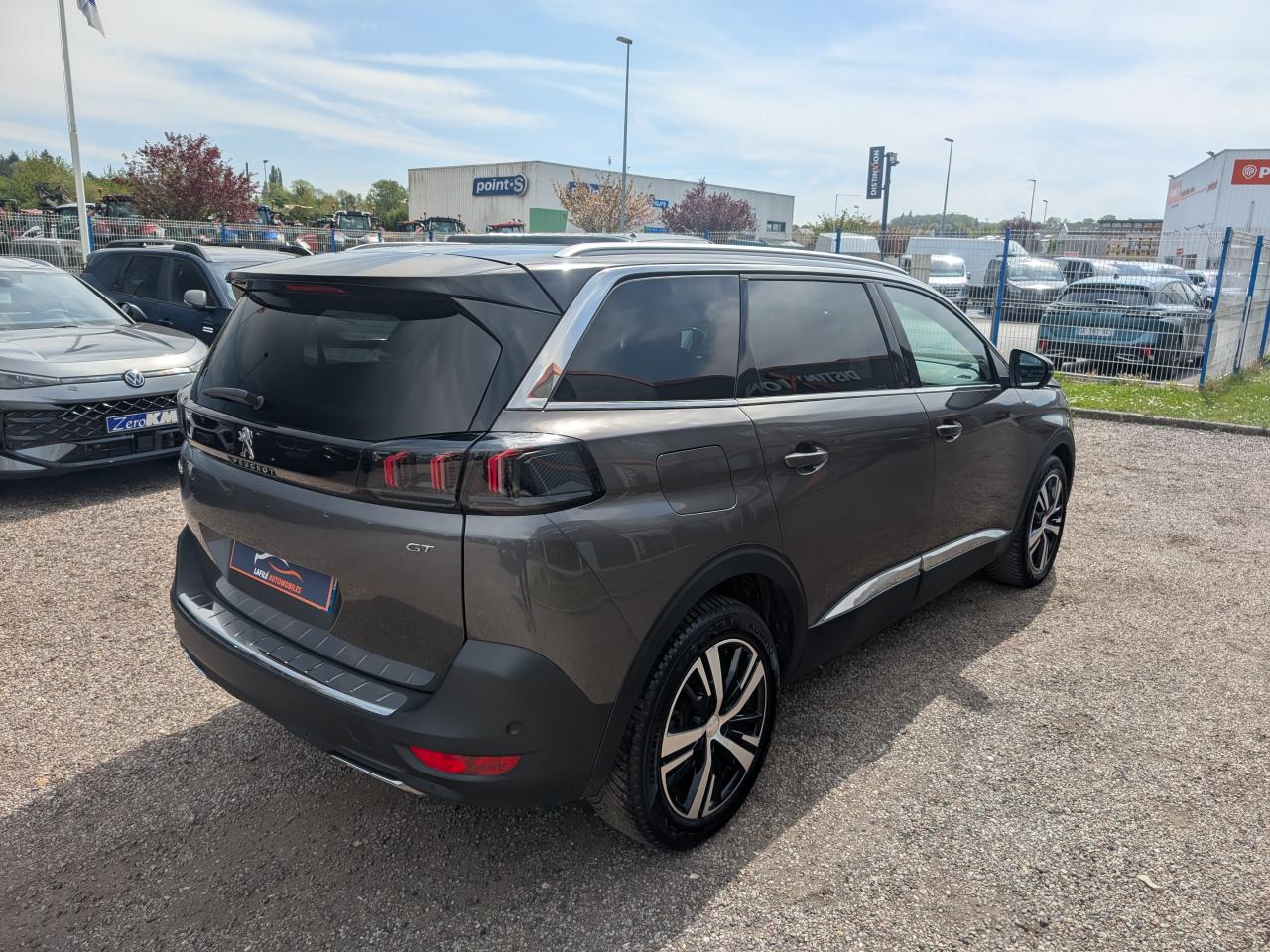 3 Sièges arrière en rang 2 (indépendants, coulissants, inclinables et escamotables dans le plancher)Accès et démarrage mains-libresAccoudoir central avant à ouverture papillon, avec compartiment de rangement éclairé et réfrigérableAir conditionné automatique bi-zone avec aérateurs aux places arrièreAirbags frontaux conducteur et passager adaptatifs (passager neutralisable)Airbags latéraux conducteur et passager avantAirbags rideaux rangs 1, 2 et 3Appuis-tête à sécurité optimisée réglables en hauteur sur les sièges conducteur et passager avant, le rang 2 (x3) et rang 3 (x2)Avertisseur de temps de conduiteBarres de toit longitudinales profilées en aluminiumCalandre GT avec design évolutif chroméCanules d'échappement de style chroméesCoques de rétroviseurs extérieurs Noir Perla NeraDécors de planche de bord et panneaux de portes en Alcantara Gris GrevalDétection de sous-gonflage indirecteDeux sièges escamotables et extractibles pour les passagers du troisième rangDirection assistée électrique, avec colonne de direction réglable en hauteur et profondeur (mécanique)Drive Mode : Choix de 2 modes de conduite (Eco ou Sport)Driver Sport PackEnjoliveurs d'arc de pavillon en inoxEssuie-vitre avant avec système de lavage 'Magic Wash'Feux arrière LED 3D avec clignotants arrière défilantsFixation ISOFIX pour sièges enfants sur 3 places arrièreFonction 'Mirror Screen' (Apple Carplay / Android Auto)Frein de stationnement électrique avec aide au démarrage en penteHabitacle et ciel de pavillon Noir MistralInserts d'ailes avant chromésJantes alliage 18" 'Detroit' bi-ton diamantées Noir OnyxJoncs de vitres latérales en inoxKit de dépannage pneumatiqueLève-vitres électriques séquentiels et antipincementLunette arrière surteintée chauffanteNavigation 3D connectée avec reconnaissance vocale, écran tactile capacitif 10" HD avec carte SIMPédalier et repose-pied conducteur en aluminiumPack City 1Pack Drive Assist PlusPack Eclairage d'ambiancePack EnfantsPack Safety PlusPack VisibilitéPare-soleil avec miroirs de courtoisie éclairésPassages de roues Noir MatPeugeot i-Cockpit combiné tête haute numérique reconfigurable,et volant compact multi-fonctionsPlafonniers avant, rang 2 et rang 3 à LED avec 2 spots de lecturePrises 12V (x3 : zone connectique, arrière de console et coffre)Prises USB de charge (x2) au 2nd rangProjecteurs 'Peugeot Full LED Technology' avec correction automatique de site, fonction Eclairage Virage Statique,'Foggy Mode' et feux diurnes à LED prolongés dans les projecteursProtecteurs de bas de portes avec inserts Inox BrillantRétroviseur intérieur électrochrome sans contourRétroviseurs extérieurs réglables, rabattables électriquement et dégivrantsReconnaissance étendue des panneaux de circulationSécurité enfant électrique des vitres arrièreSabot de pare chocs avant peint Gris LionSellerie Mi-TEP/Tissu BelomkaSeuils de portes avant en inoxSiège conducteur avec réglage lombaire manuelSiège passager avant avec mise en tabletteSièges conducteur et passager réglables en hauteurSurtapis aux places avant et arrièreToggle Switches' chromés (touches 'piano' d'activation des fonctions de l'écran tactile)Toit Black DiamondTrappes de rangement (x2) aux pieds des passagers du deuxième rangVitres latérales AR surteintéesVolant cuir fleur perforé avec bagues chrome acier et badge GT