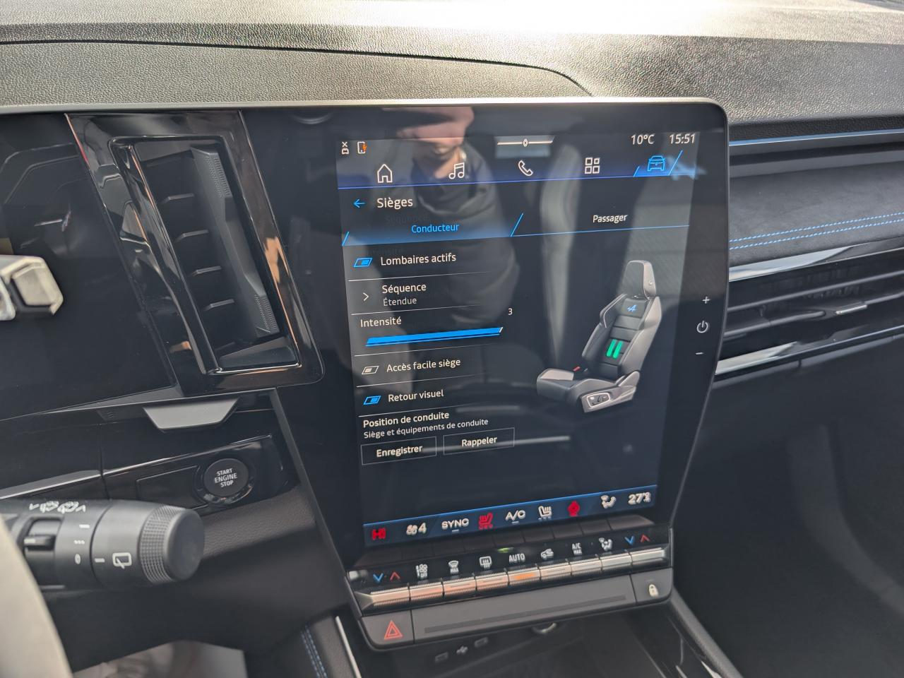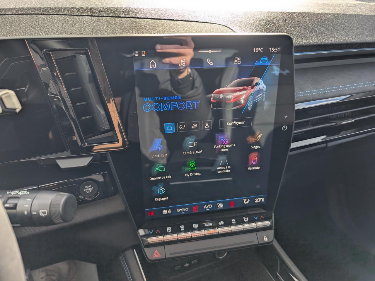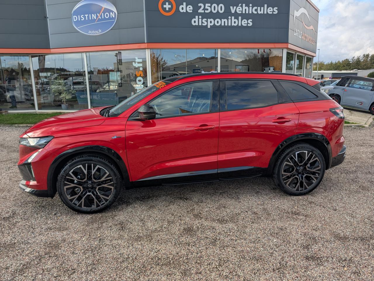 Accoudoir central ARActive driver assist : régulateur de vitesse adaptatif intelligent + centrage dans la voie avec scène réalisteAide au démarrage en côteAide au maintien dans la voieAide au parking avant, arrière et latéralAlerte de distance de sécuritéAlerte sortie sécurisée des occupantsAndroid Auto et Apple CarPlayAntenne requin Noir étoiléAppel d'urgenceAvertisseur d'angle mortAvertisseur de changement de voieAvertisseur de sortie de stationnement en marche arrièreBanquette arrière coulissanteBarres de toit Noir SatinCalandre identitaire noir brillantCaméra de recul analogiqueCarte accès et démarrage mains-libresChargeur smartphone à inductionClimatisation automatique bi-zoneCommutation automatique des feux route/croisementConduite hybride prédictiveDétection arrière avec correction trajectoire d’urgenceDétection avant avec correction trajectoire d’urgenceEcran conducteur de 12.3''Essuie-vitres automatiquesFeux LED adaptive vision (avec fonction antibrouillard intégrée)Finition planche de bord et panneaux de porte en AlcantaraFOTA (Firmware Over-The-Air)Frein de parking électrique avec fonction Auto-HoldFreinage automatique d'urgence en marche arrière (RAEB)Freinage d'urgence autonome avec fonction intersectionFreinage d’urgence automatique urbain/péri-urbain avec détection piétons et cyclistesHayon électrique mains-libresJantes alliage 20” altitude diamanté noir avec vernis fumé grisLimiteur de vitesseLogos avant et arrière noir brillantMonogramme noir brillantMultisense 4 modes (perso/sport/comfort/eco)OpenR link 12” : système multimédia connecté avec Google intégré incluant pack navigation (Google Maps et Google Assistant) pendant 5 ans, et pack infotainment (Google Play)Pack remote services (via l'application My Renault) inclus pendant 5 ansPédalier en aluminiumPeinture Rouge FlammeReconnaissance des panneaux de signalisation avec alerte de survitesseRéplication smartphone sans filRétroviseur intérieur électrochrome sans contourRétroviseurs extérieurs rabattables électriquementSellerie mixte tissu carbone Alcantara avec surpiqûres bleu, blanc, rougeSiège conducteur électrique avec fonction massage réglage lombaireSiège passager électriqueSiège passager réglable en hauteurSièges avant chauffantsSystème audio Arkamys auditorium avec 6 haut-parleursSystème d'alerte franchissement de ligne (LDW)Système de reconnaissance faciale du conducteurSystème de surveillance de l'attention du conducteurVitres arrière surteintéesVolant chauffantVolant spécifique en textile refined avec insert Alcantara