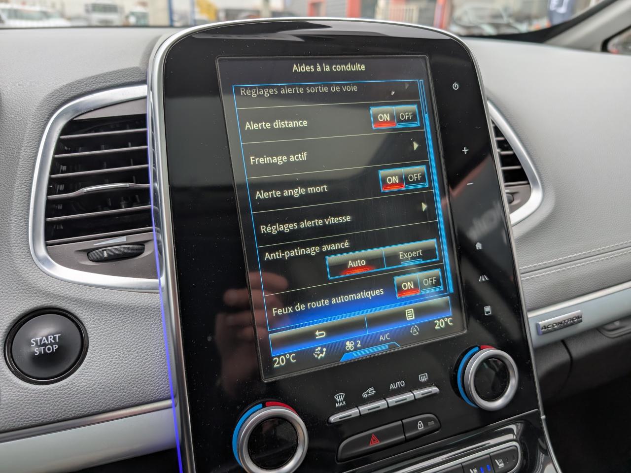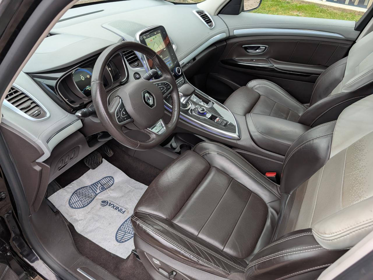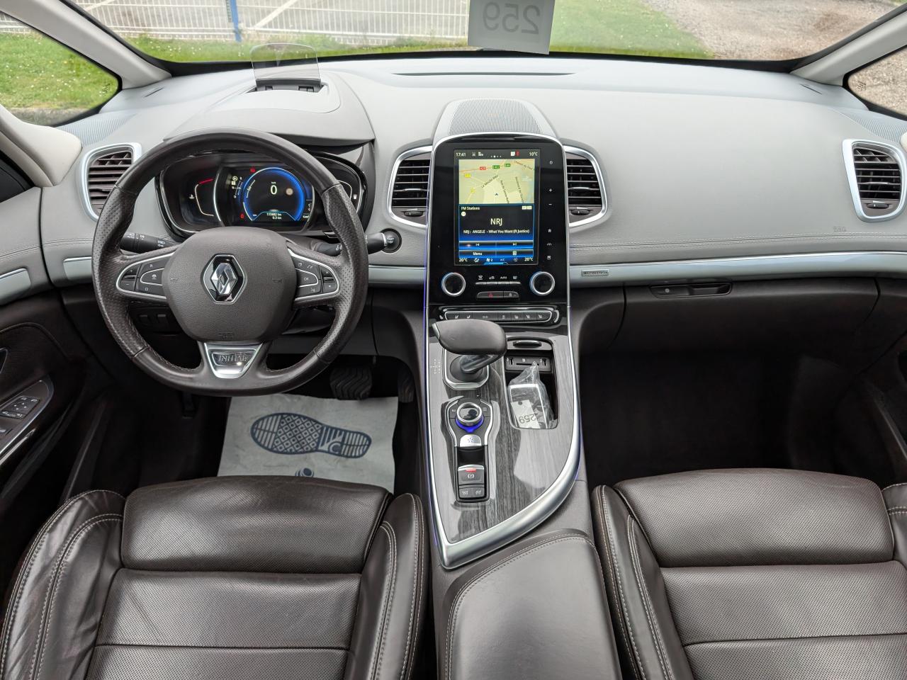 1 prise jack à l'avant et l'arrière2 ports USB à l'avant et 2 à l'arrièreABS avec aide au freinage d'urgenceAccoudoir central avant avec rangementAdvanced Traction ControlAérateurs aux places arrièresAide au démarrage en côteAide au parking avant, arrière et latéralAirbags frontaux conducteur et passager adaptatifs (airbag passager déconnectable)Airbags latéraux (airbag thorax et bassin à l'avant)Airbags rideaux de tête aux places avant et arrièreAllumage automatique des feux de détresseAppuie-tête avant et arrière RelaxBose Surround System avec 12 haut-parleurs et Active Noise ControlCaméra de reculCapteurs de toxicité (Nox/CO)Carte Renault mains-libres avec allumage des feux à l'approcheClimatisation automatique bi-zoneCondamnation automatique des ouvrants en roulantConsole suspendue avec rangement et éclairage d'ambianceContrôle dynamique de trajectoire (ESP)Coques de rétroviseurs extérieurs noir nacréDétecteur de pluie et allumage automatique des projecteursDirection à assistance électriqueEclairage de bienvenue et ambiance lumineuseEco driving (Monitoring, Scoring, Coaching et conseils)Energy Smart Management: récupération d'énergie au freinageFeux arrières à LEDFeux de jour à LEDFeux LED Pure VisionFilm Console "Silver Wood"Filtre combinéFixations Isofix aux 3 places arrièreFrein de parking assistéJantes alliage 19" Initiale ParisKit gonflage de réparationLecteur carte SD rang 1Lève-vitres avant et arrière électriques, à impulsion avec dispositif anti-pincementMiroirs de courtoisie éclairésModularité One TouchOrdinateur de bordPack 4ControlPack CityPack Renault R-Link 2Pack SécuritéPack TechnologiePack Visio SystemPare brise athermique anti UVPare-brise acoustiquePare-brise panoramique lumière avec occultation par vélumPlanche de bord gris Lune avec surpiqûres ou brun foncé avec surpiqûresPoches aumônière accessibles au rang 2Pommeau de levier de vitesses en cuirPrises 12 volts en rangs 1, 2 et 3Renault Multi-SenseRétroviseur intérieur électrochromeRétroviseurs extérieurs électriques, dégivrants, à mémoire avec sonde de température et rabattables électriquementSellerie cuir Nappa pleine fleur gris camaïeu ou brun foncéSièges arrière individuels (coulissants et dossiers réglables)Sièges avant chauffantsSièges conducteur et passager électriques massants et chauffants réglables 10 voies et réglage lombaireSièges conducteur et passager réglables en hauteurStores pare-soleil arrièreSurtapis de sol avant et arrière Initiale ParisSystème de surveillance de pression des pneusTiroir Easy-Life avec éclairage, réfrigéréVitrage latéral feuilletéVitres latérales et lunette arrière surteintéesVolant cuir Nappa réglable en hauteur et profondeur