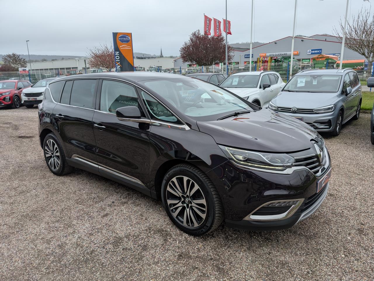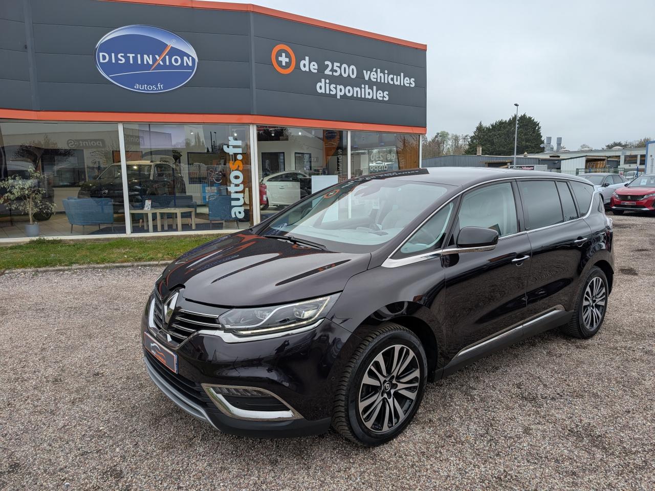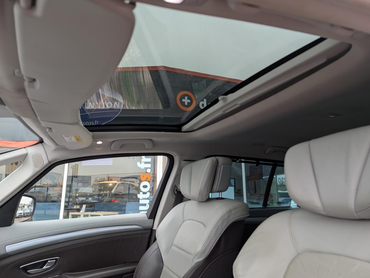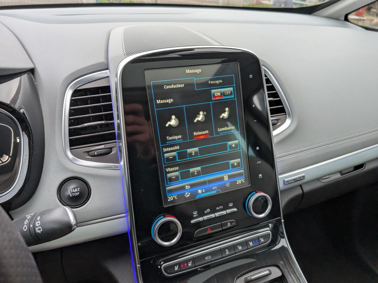 1 prise jack à l'avant et l'arrière2 ports USB à l'avant et 2 à l'arrièreABS avec aide au freinage d'urgenceAccoudoir central avant avec rangementAdvanced Traction ControlAérateurs aux places arrièresAide au démarrage en côteAide au parking avant, arrière et latéralAirbags frontaux conducteur et passager adaptatifs (airbag passager déconnectable)Airbags latéraux (airbag thorax et bassin à l'avant)Airbags rideaux de tête aux places avant et arrièreAllumage automatique des feux de détresseAppuie-tête avant et arrière RelaxBose Surround System avec 12 haut-parleurs et Active Noise ControlCaméra de reculCapteurs de toxicité (Nox/CO)Carte Renault mains-libres avec allumage des feux à l'approcheClimatisation automatique bi-zoneCondamnation automatique des ouvrants en roulantConsole suspendue avec rangement et éclairage d'ambianceContrôle dynamique de trajectoire (ESP)Coques de rétroviseurs extérieurs noir nacréDétecteur de pluie et allumage automatique des projecteursDirection à assistance électriqueEclairage de bienvenue et ambiance lumineuseEco driving (Monitoring, Scoring, Coaching et conseils)Energy Smart Management: récupération d'énergie au freinageFeux arrières à LEDFeux de jour à LEDFeux LED Pure VisionFilm Console "Silver Wood"Filtre combinéFixations Isofix aux 3 places arrièreFrein de parking assistéJantes alliage 19" Initiale ParisKit gonflage de réparationLecteur carte SD rang 1Lève-vitres avant et arrière électriques, à impulsion avec dispositif anti-pincementMiroirs de courtoisie éclairésModularité One TouchOrdinateur de bordPack 4ControlPack CityPack Renault R-Link 2Pack SécuritéPack TechnologiePack Visio SystemPare brise athermique anti UVPare-brise acoustiquePare-brise panoramique lumière avec occultation par vélumPlanche de bord gris Lune avec surpiqûres ou brun foncé avec surpiqûresPoches aumônière accessibles au rang 2Pommeau de levier de vitesses en cuirPrises 12 volts en rangs 1, 2 et 3Renault Multi-SenseRétroviseur intérieur électrochromeRétroviseurs extérieurs électriques, dégivrants, à mémoire avec sonde de température et rabattables électriquementSellerie cuir Nappa pleine fleur gris camaïeu ou brun foncéSièges arrière individuels (coulissants et dossiers réglables)Sièges avant chauffantsSièges conducteur et passager électriques massants et chauffants réglables 10 voies et réglage lombaireSièges conducteur et passager réglables en hauteurStores pare-soleil arrièreSurtapis de sol avant et arrière Initiale ParisSystème de surveillance de pression des pneusTiroir Easy-Life avec éclairage, réfrigéréVitrage latéral feuilletéVitres latérales et lunette arrière surteintéesVolant cuir Nappa réglable en hauteur et profondeur