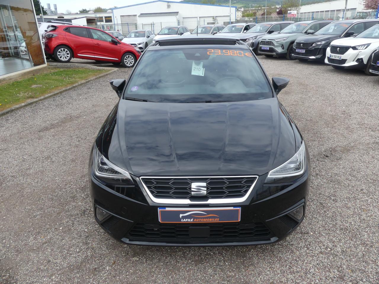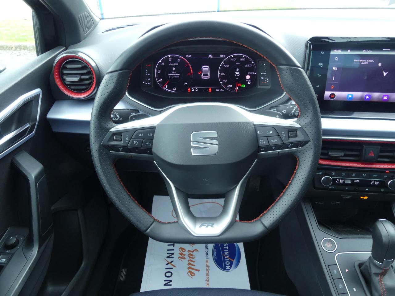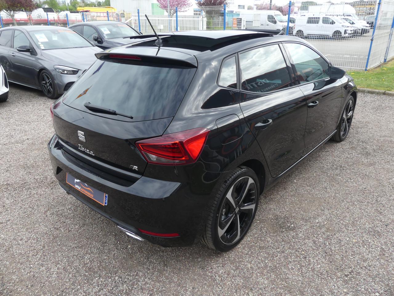 2 lampes de lecture à l'avant2 prises USB-C, Bluetooth3 appuie-tête arrièreABS électronique (système antiblocage des roues)Aide au démarrage en côte (HHC)Airbags frontaux conducteur et passager (déconnectable côté passager)Airbags latéraux avant tête/thoraxAirbags rideauxAlerte de non-bouclage des ceintures de sécuritéAnti-démarrage électroniqueAnti-patinage (ASR)Appel d'urgence - EcallBanquette arrière rabattable 1/3-2/3Calandre spécifique FR Noir Piano avec contour chroméCeintures de sécurité à 3 points d'ancrageConnectivity Box avec chargeur à inductionContrôle de pression des pneus ( TPMS )Contre-portes avant en finition textileCorrecteur électronique de trajectoire (ESC)Couvre-coffre rabattableDétecteur de fatigueDétecteur de luminositéDigital Cockpit ProEclairage d'ambiance à LEDEclairage de plaque d’immatriculation à LEDEntourages d'aérateurs centraux et latéraux gris satinés avec inserts Rouge LaserFeux arrière LED avec signature lumineuse en triangleFixation pour sièges enfants ISOFIX et Top Tether pour les places arrièreFront Assist avec détection des piétons et des cyclistesFull Link sans fil (Android Auto + Apple CarPlay)Jantes alliage 17'' 'FR Dynamic'Kit anti-crevaisonLane Assistant : assistant de maintien dans la voieLogos "SEAT" satinés à l'avant, à l'arrière et sur le volantOrdinateur de bordPack Design FRPack RangementPack SpringPack Vision Plus (Caméra de recul Radars de stationnement avant et arrière PDC)Palettes au volantPare-chocs et poignées de portes couleur carrosseriePare-soleil conducteur avec pochette porte-cartesPeinture Rouge PassionProjecteurs antibrouillardProjecteurs Full LED avec signature lumineuse en triangleRégulateur et limiteur de vitesseRétroviseurs latéraux, avec clignotants intégrésRadio Numérique DABSeat Drive ProfileSellerie textile “Le Mans” bi-matière avec surpiqûres rouges et Planche de bord moussée / contre-portes avant avec inserts Gris AcierSiège conducteur réglable en hauteurSièges avant ergonomiquesSignature “Ibiza” manuscrite sur le hayonSystème audio à 6 haut-parleursSystème d'accès et de démarrage sans clé Keyless AccessSystème de navigation Navi System + 9,2"Tapis de sol textile à l'avant et à l'arrièreVerrouillage centralisé à distance (2 télécommandes)Vitres arrière surteintéesVolant sport multifonction à méplat en cuir Nappa perforé avec surpiqûres rouges et logo FR
